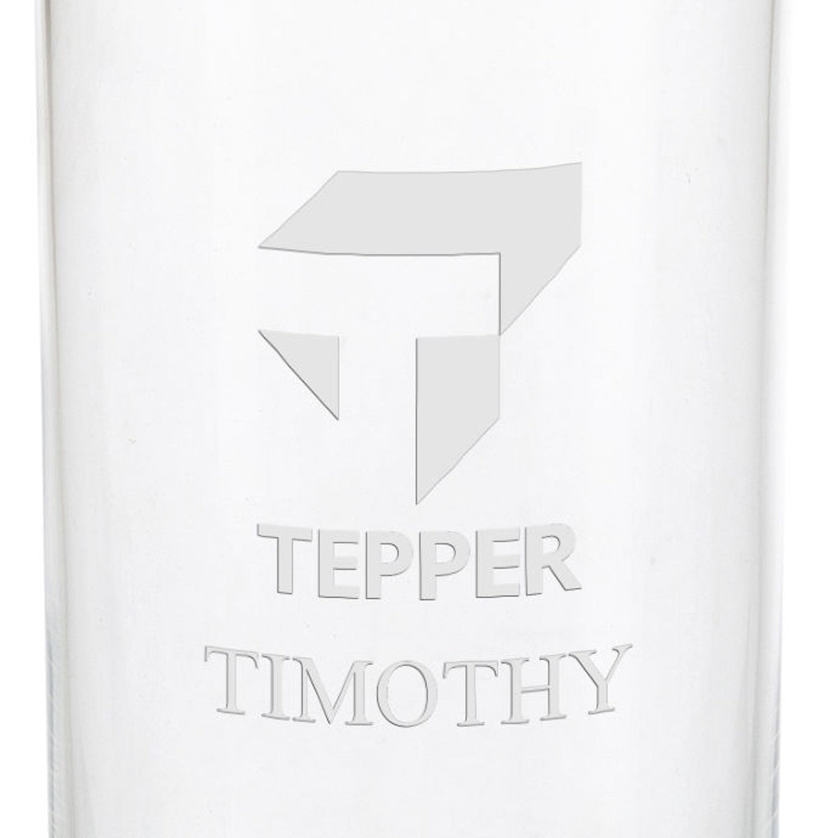 Tepper School of Business iced beverage glasses have the Tepper logo deep-etched on each glass. Generously proportioned 16-ounce glasses are a pleasure to hold.