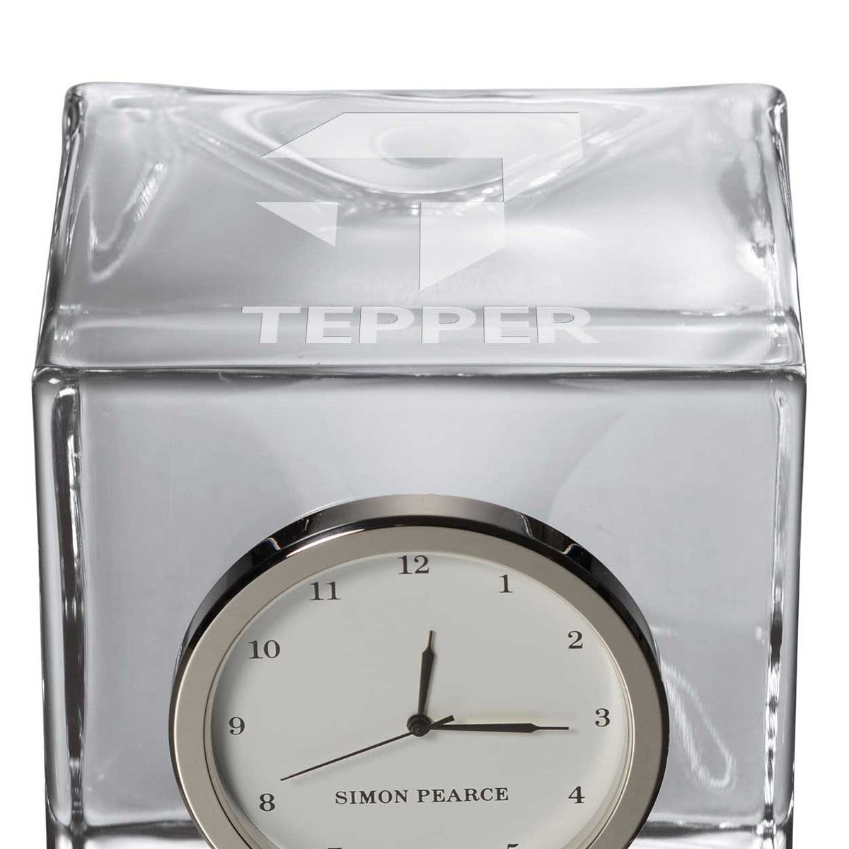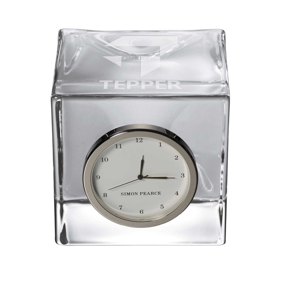 The Tepper School of Business Glass Desk Clock is distinctly etched with the Tepper logo, and is a great addition to any surface. The clock includes a traditional numbered face with a sweep hand to count the seconds.
