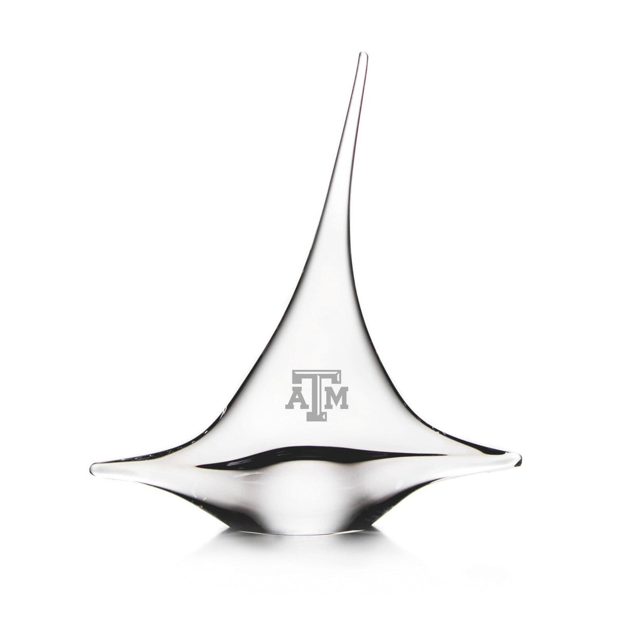 The Texas A&M University Glass Sailboat is a beautifully crafted decorative piece, featuring the Texas A&M Logo artfully etched into the shimmering glass. This elegant sailboat symbolizes adventure and Texas A&M spirit. serving as a charming reminder of your school pride.