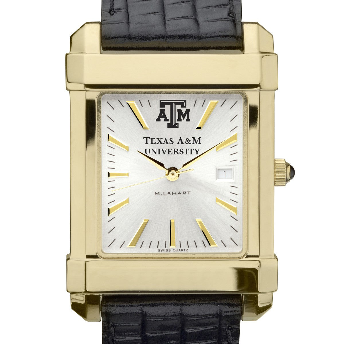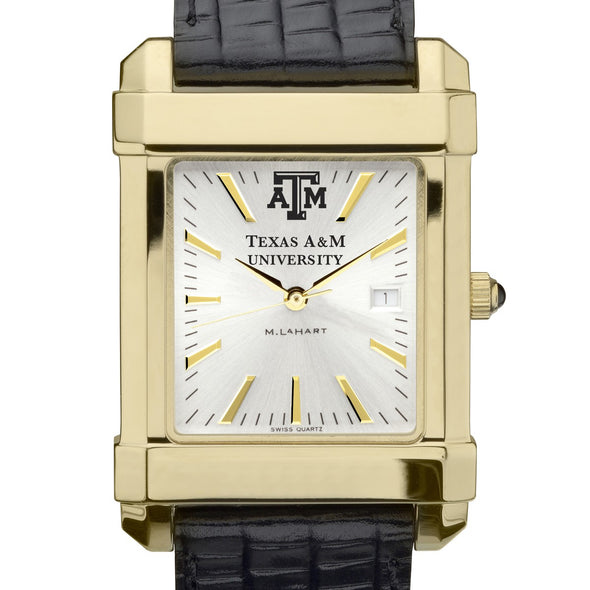 Texas A&M Men's Gold Watch with 2-Tone Dial & Leather Strap at M.LaHart & Co.