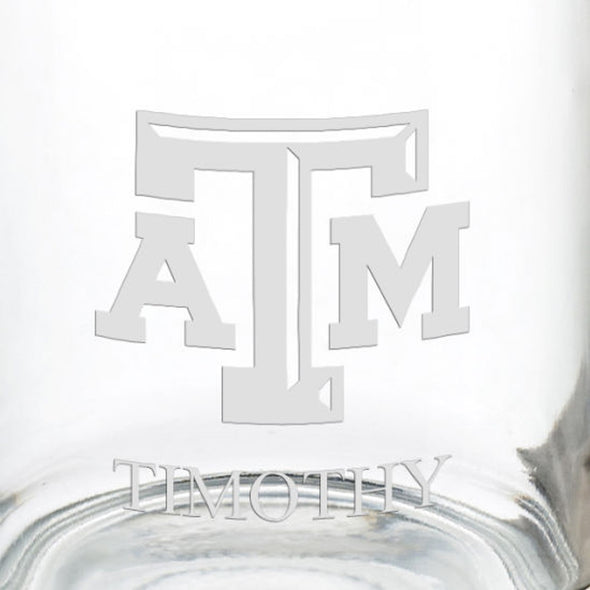 The Texas A&M glass coffee mug is deep-etched with the Texas A&M University logo. Generously proportioned 13 oz glasses are a pleasure to hold. Your name can be added under the logo for free.