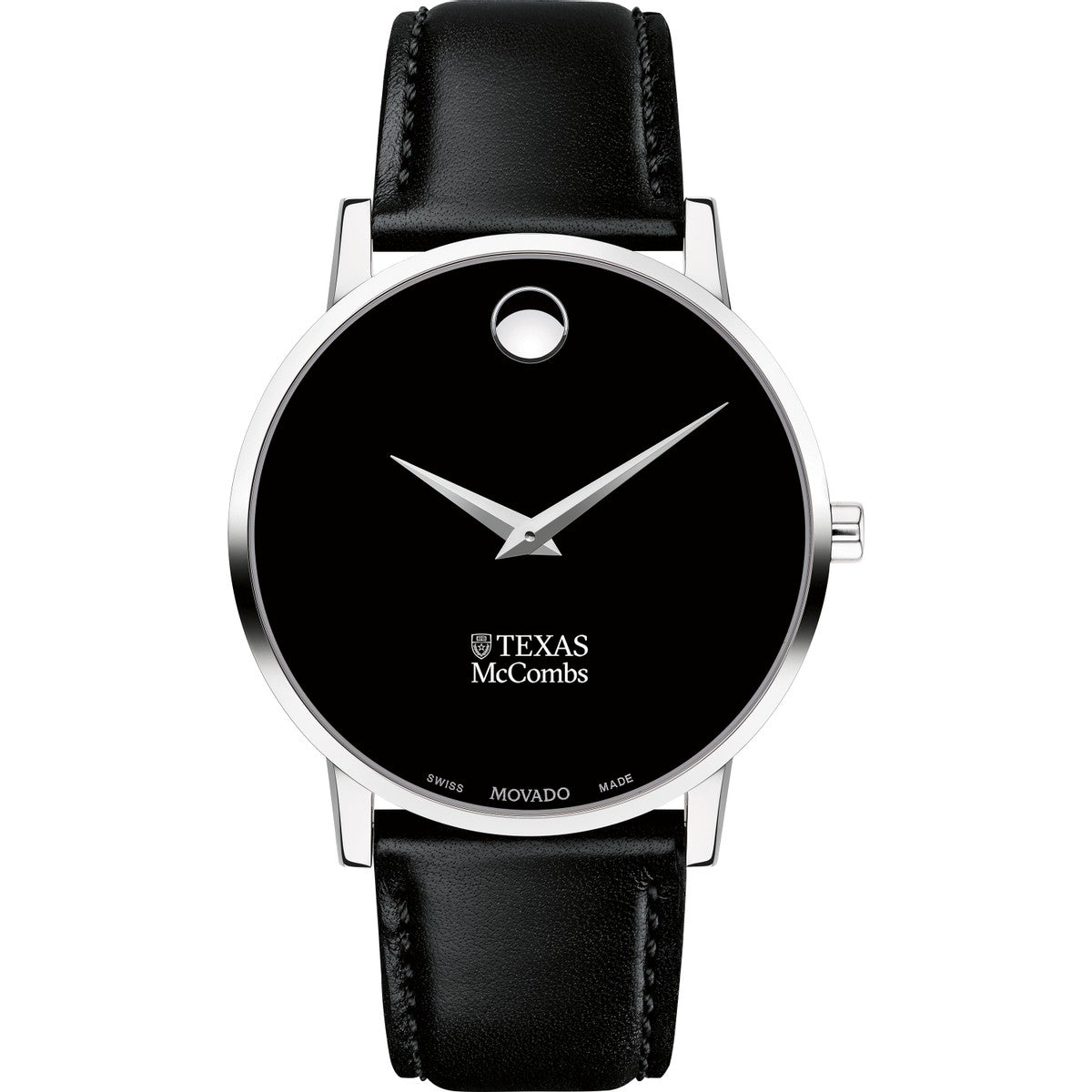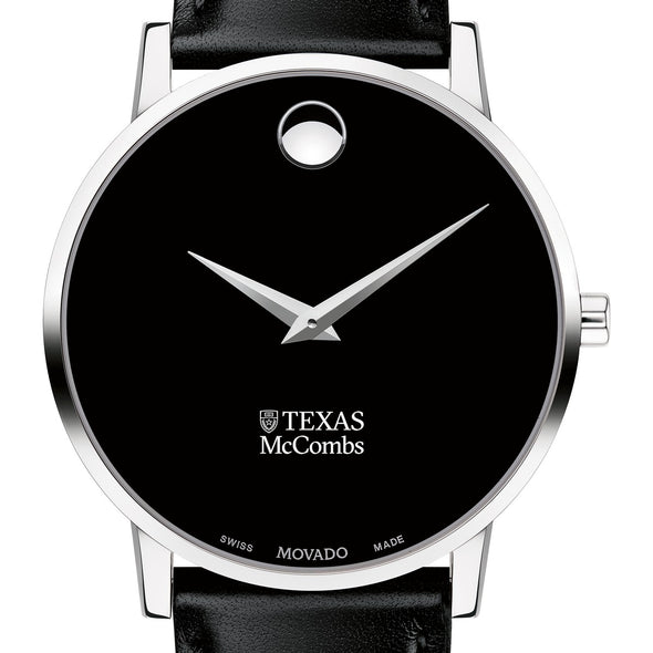 McCombs School of Business Men's Movado Museum watch features the Texas McCombs logo in full color at 6 o'clock on black dial. Created in 1947, the iconic concave dot symbolizes the sun at high-noon. Complimentary personal engraving.