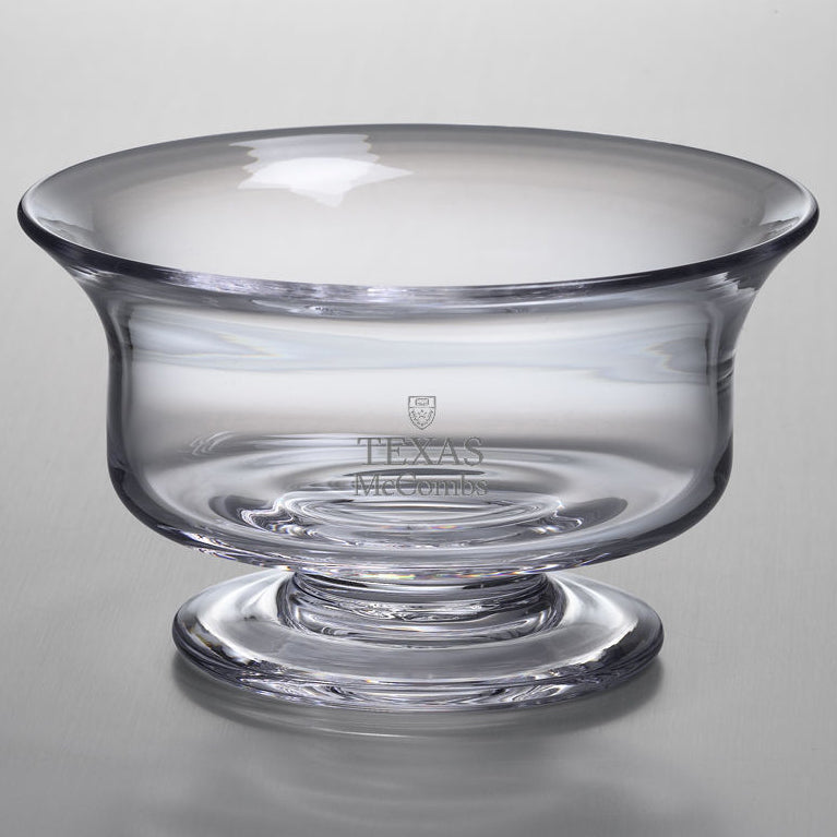 The McCombs School of Business Small Glass Presentation Bowl, with the Texas McCombs logo beautifully etched into the hand-crafted glass is a great gift. The traditional style of the bowl complements any Texas McCombs home.
