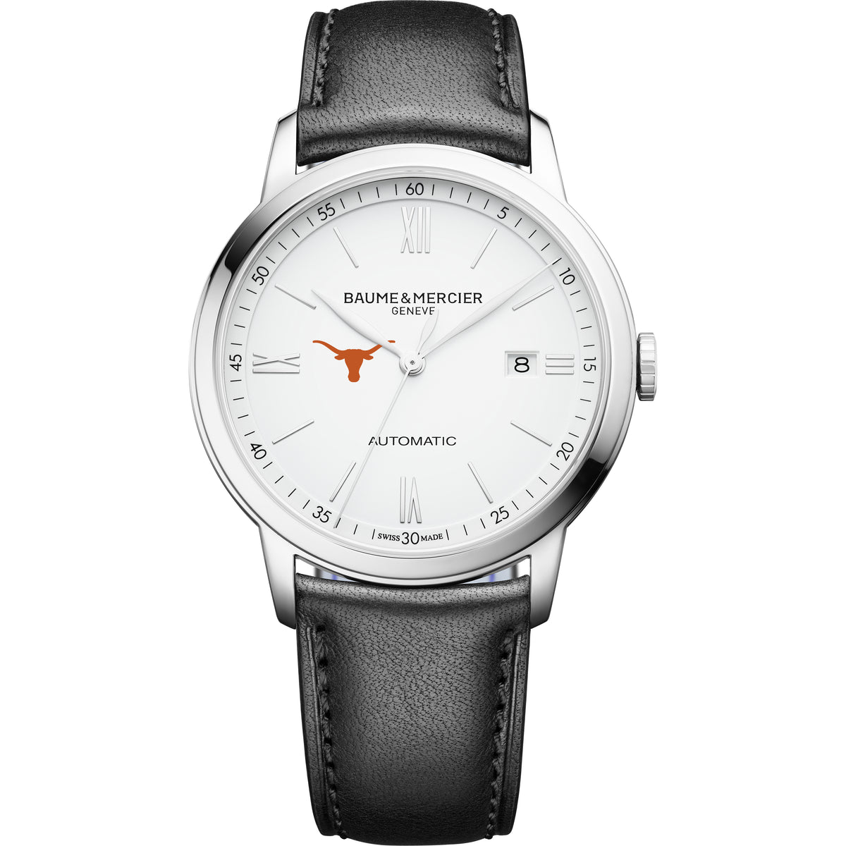 UT Austin Men's Baume et Mercier 42mm Classima Automatic Watch with White Dial & Black Leather Strap