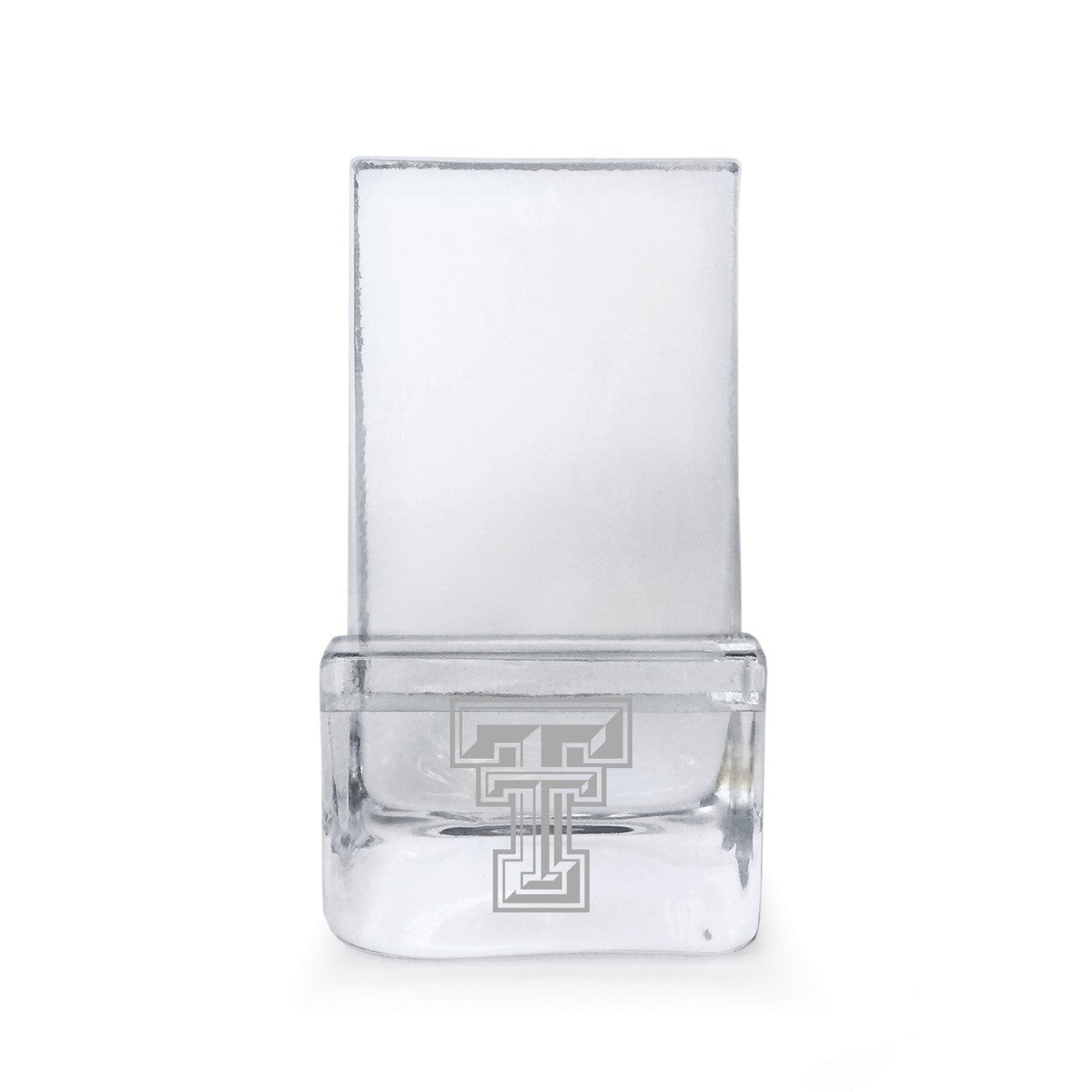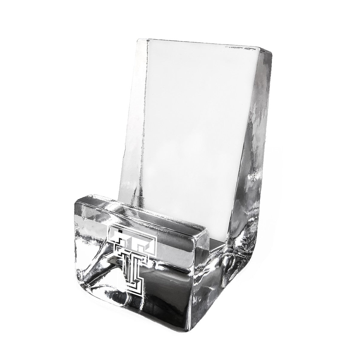 This handcrafted Texas Tech Glass Phone Holder is the perfect addition to your work or home environment. Formed from only the finest clear glass, the Texas Tech Logo is distinctly etched on the front.