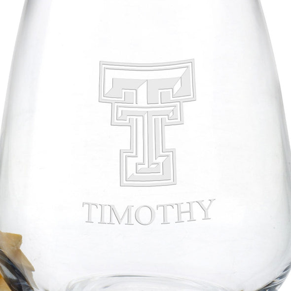 Contemporary Texas Tech stemless wine glasses bring an elegant touch to your table or bar. The Texas Tech Logo is deep-etched on each glass.
