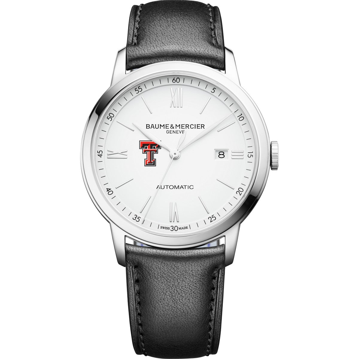 Texas Tech Men's Baume et Mercier 42mm Classima Automatic Watch with White Dial & Black Leather Strap