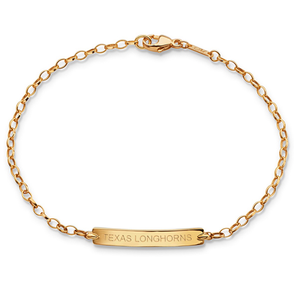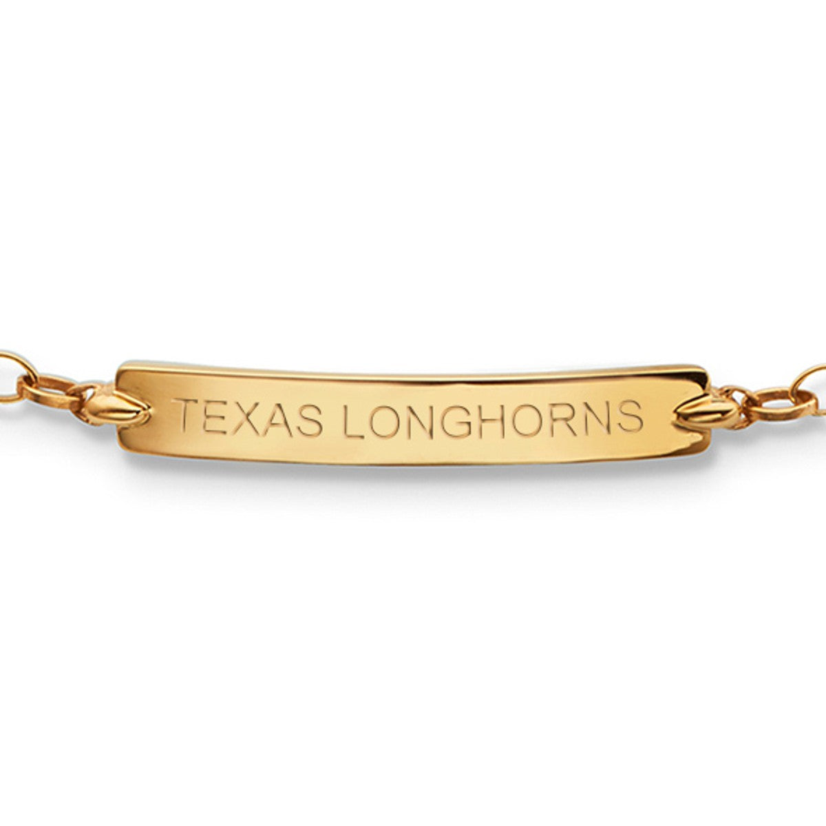 A feminine, delicate bracelet in 18K gold as appropriate for evening wear as day. "TEXAS LONGHORNS" engraved on slim banner accentuates the elegance.