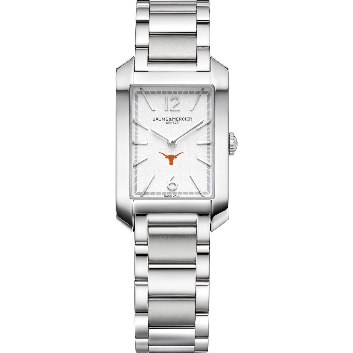Sleek and sophisticated, the UT Austin Women's Baume et Mercier Hampton Watch combines a silver opaline dial with the UT Austin logo, rhodium-plated hands, and a polished stainless steel bracelet. A refined and elegant timepiece for those who appreciate timeless style. Complimentary personal engraving.