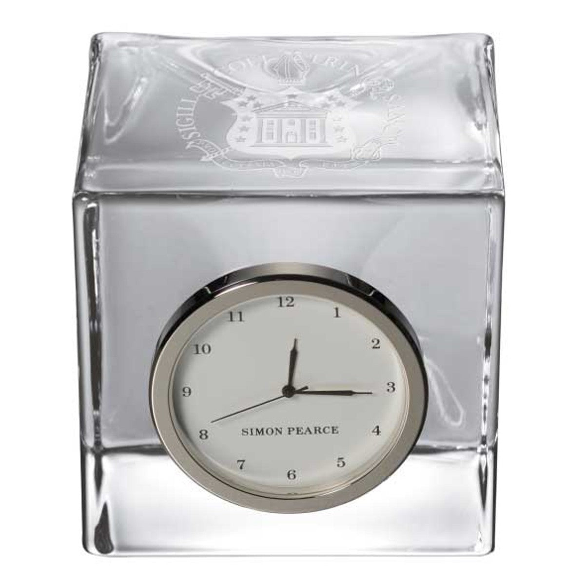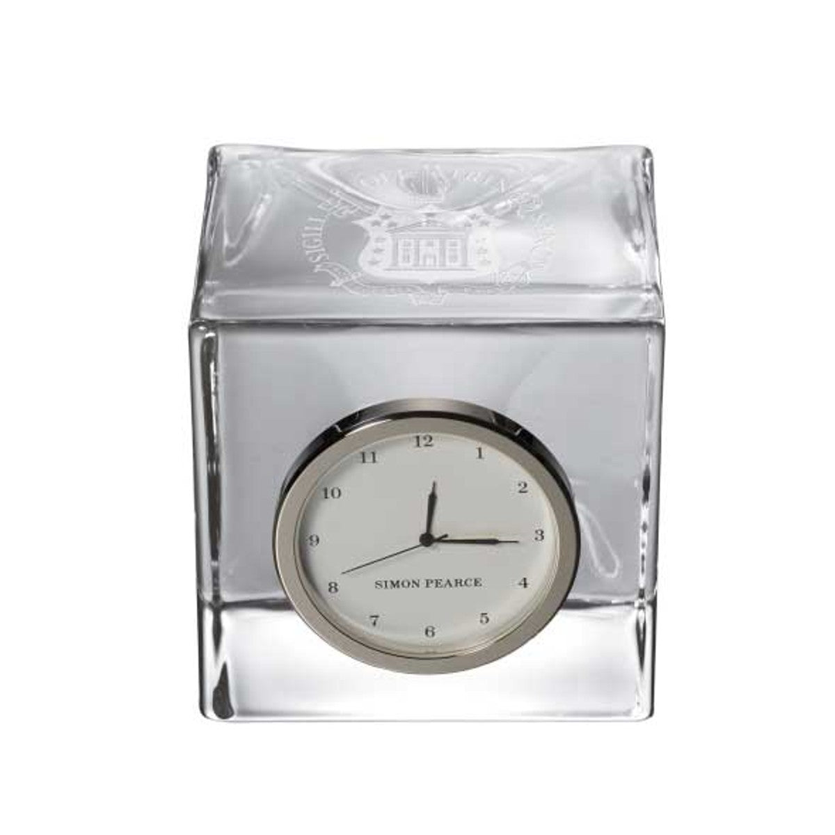 The Trinity College Glass Desk Clock is distinctly etched with the Trinity logo, and is a great addition to any surface. The clock includes a traditional numbered face with a sweep hand to count the seconds.