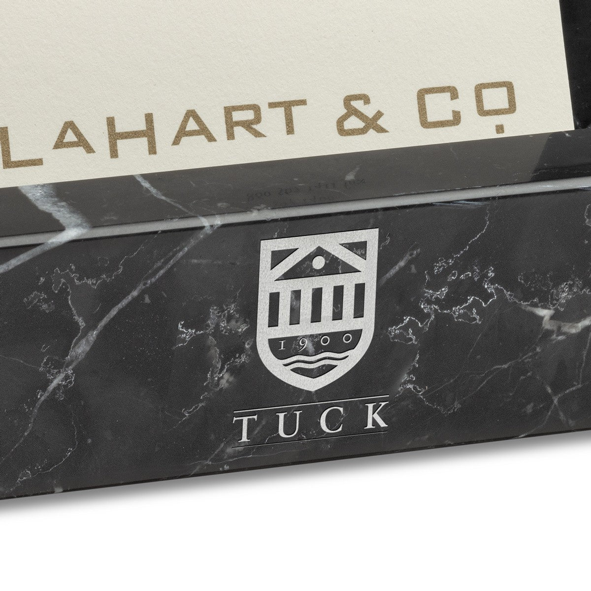 Perfect for new grads and seasoned professionals, the officially licensed Tuck School of Business marble cardholder is an essential for the desk of Tuck fans. The Tuck logo is elegantly featured on the front of this substantial, solid marble card holder and accommodates all standard size business cards.