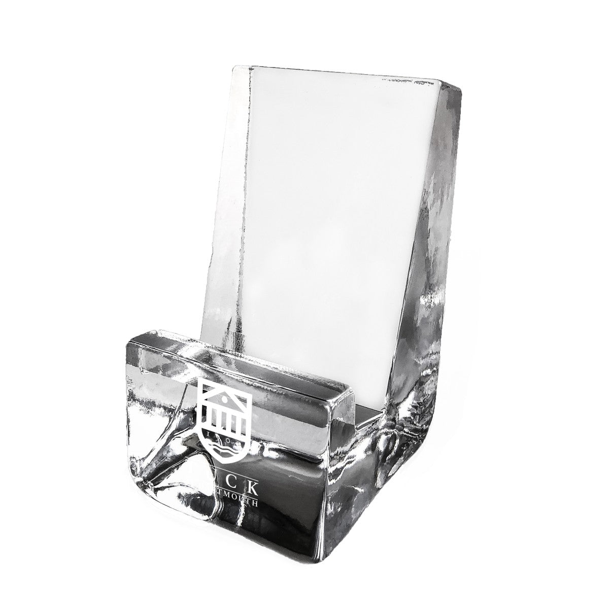 This handcrafted Tuck School of Business Glass Phone Holder is the perfect addition to your work or home environment. Formed from only the finest clear glass, the Tuck logo is distinctly etched on the front.