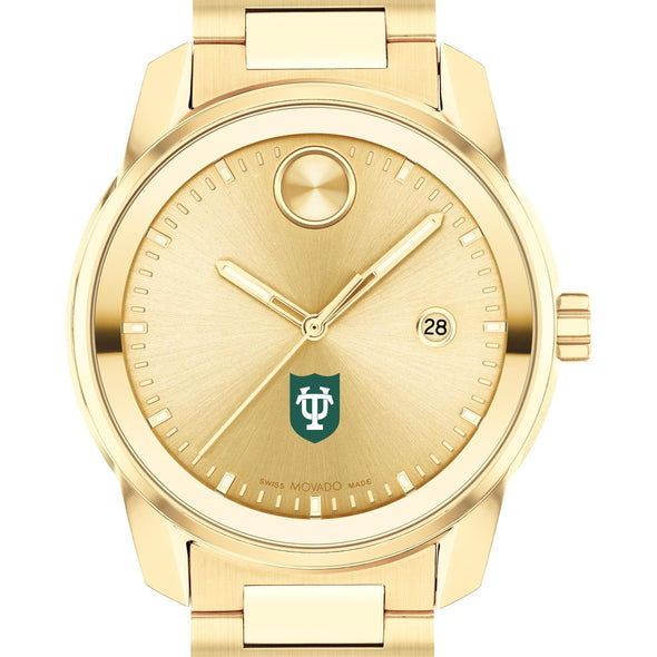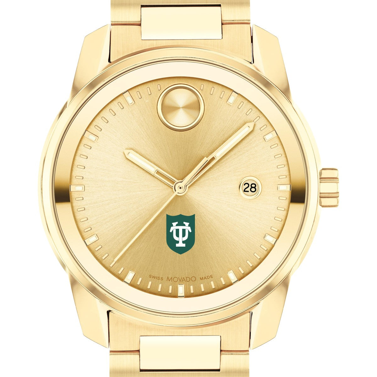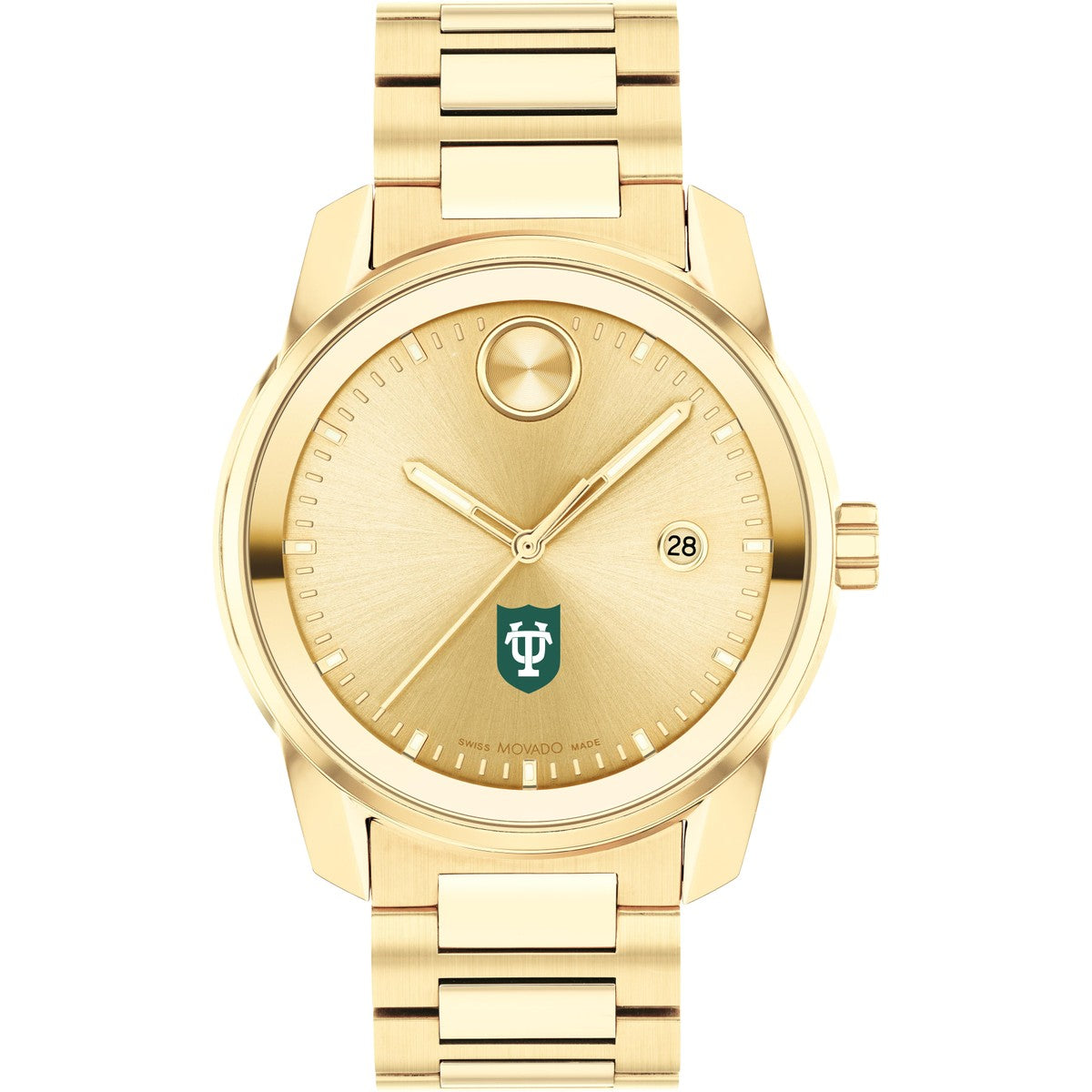 The Tulane University Men's BOLD Movado watch showcases the iconic Tulane Logo on its luxurious gold-tone dial. Crafted with a premium gold ion-plated stainless steel case and bracelet, this timepiece exudes refined elegance and sophistication. The perfect statement accessory for any occasion, this Movado watch can be personalized with free engraving without delaying order processing. Complimentary personal engraving.