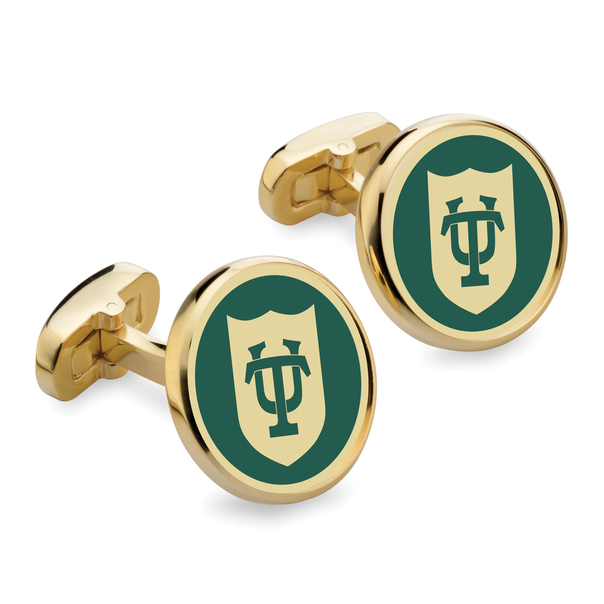 • Enamel Design: The Tulane University Enamel Cufflinks feature the iconic Tulane University insignia in vibrant enamel colors. The logo is carefully applied to the cufflinks, creating a striking and eye-catching design.