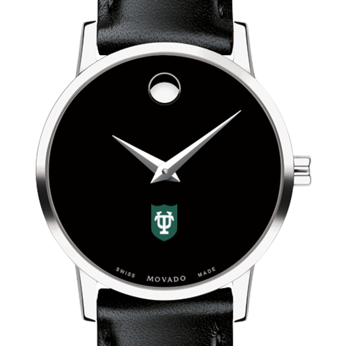 Tulane University Women's Movado Museum watch features the Tulane Logo in full color at 6 o'clock on black dial. Created in 1947, the iconic concave dot symbolizes the sun at high-noon. Complimentary personal engraving.