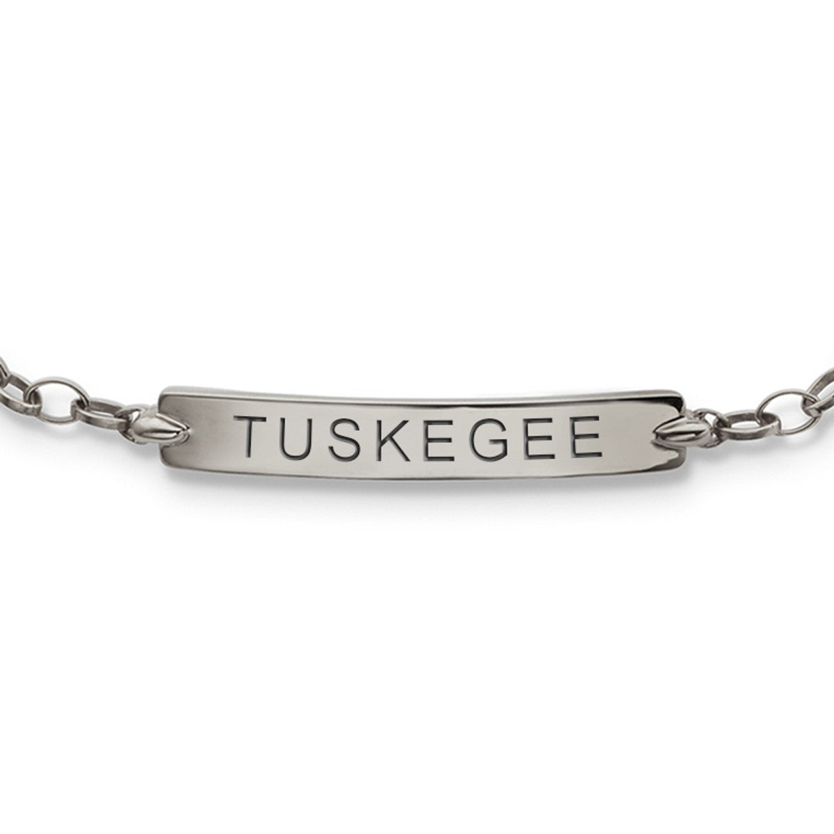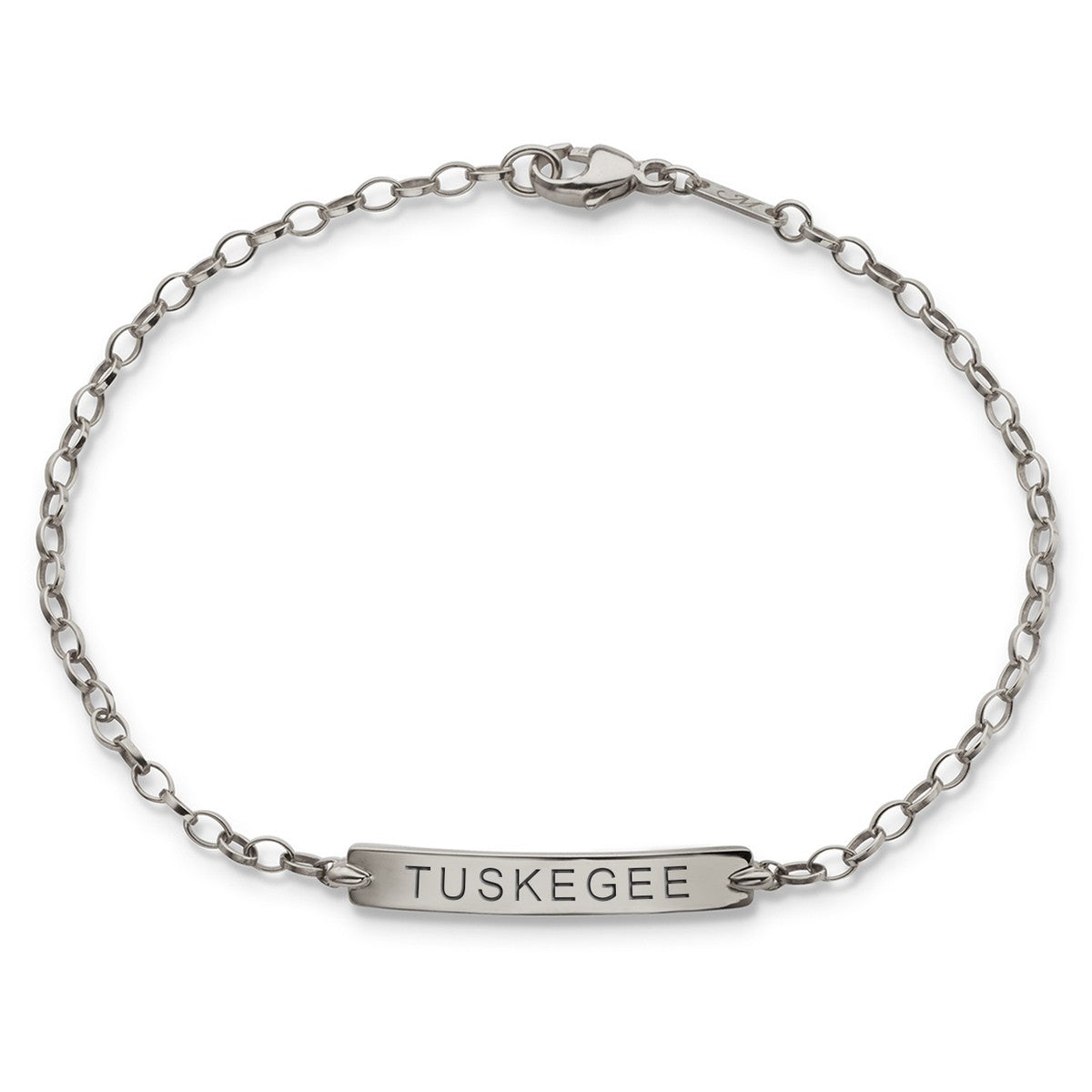 A feminine, delicate bracelet in sterling silver as appropriate for evening wear as day. "TUSKEGEE" engraved on slim banner accentuates the elegance.