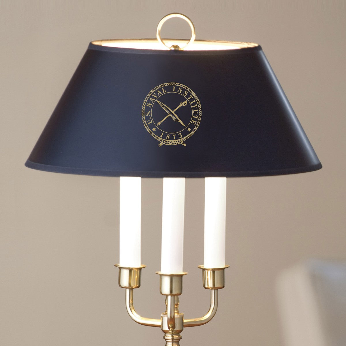 Exemplary craftsmanship defines our traditional USNI lamp, highlighted with the USNI Logo on the black parchment shade. A timeless reminder of your USNI days. Free personalization with an engraved brass plate included for easy at-home attachment.