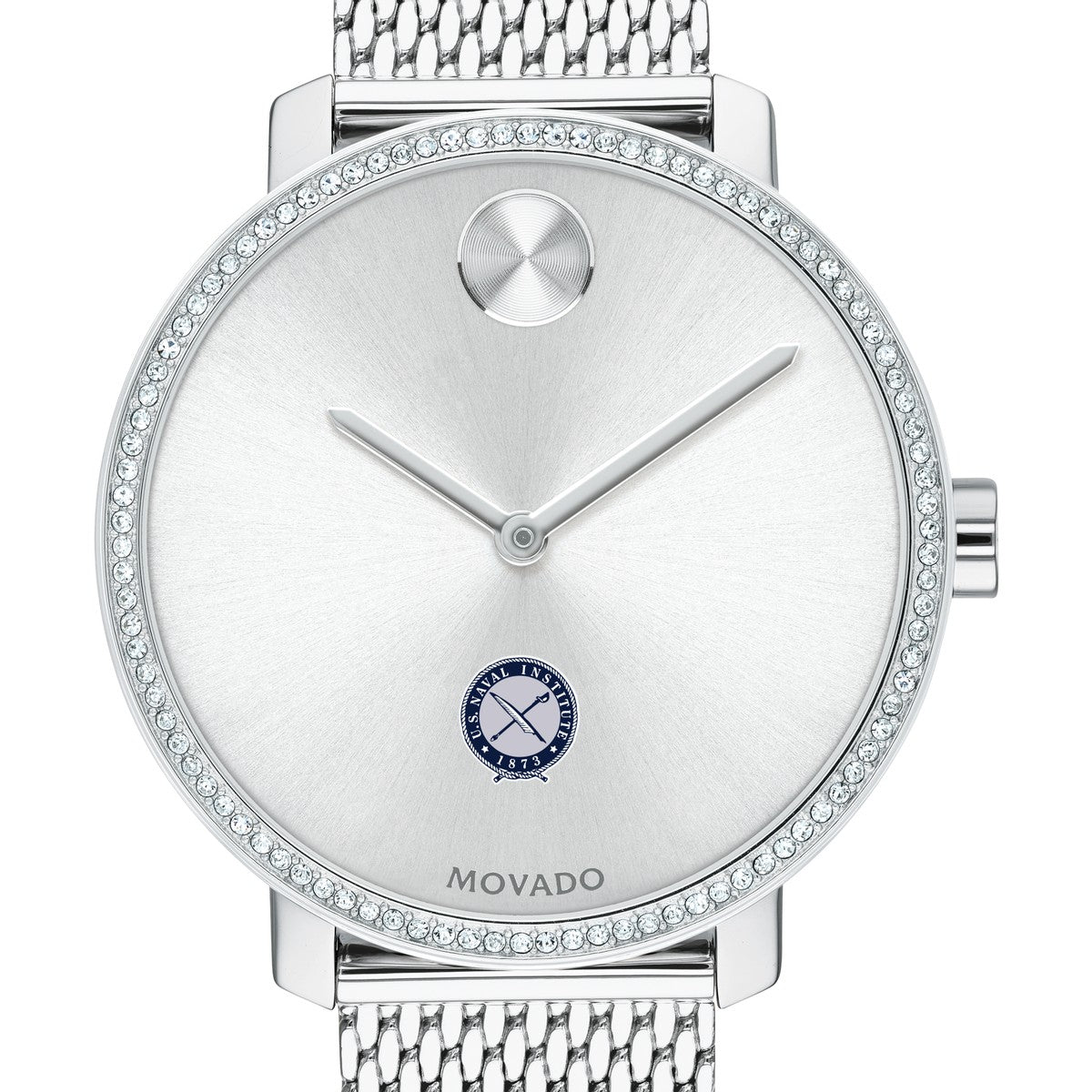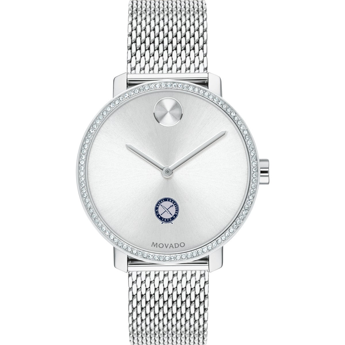 U.S. Naval Institute Women's Movado BOLD watch features the USNI Logo in full color at 6 o'clock on silver sunray dial.