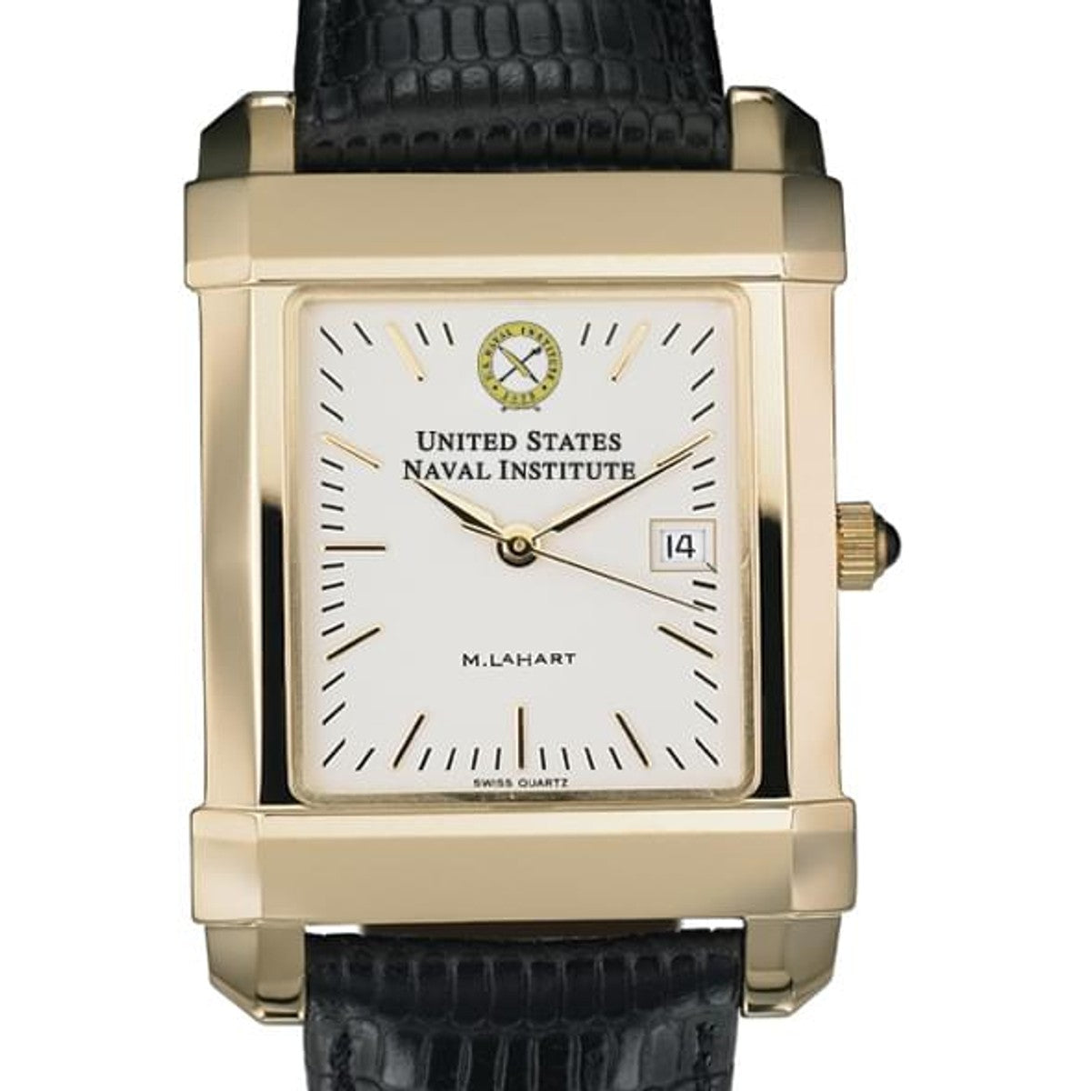 U.S. Naval Institute men's gold watch featuring the USNI Logo on cream dial. Free Engraving on all watches.