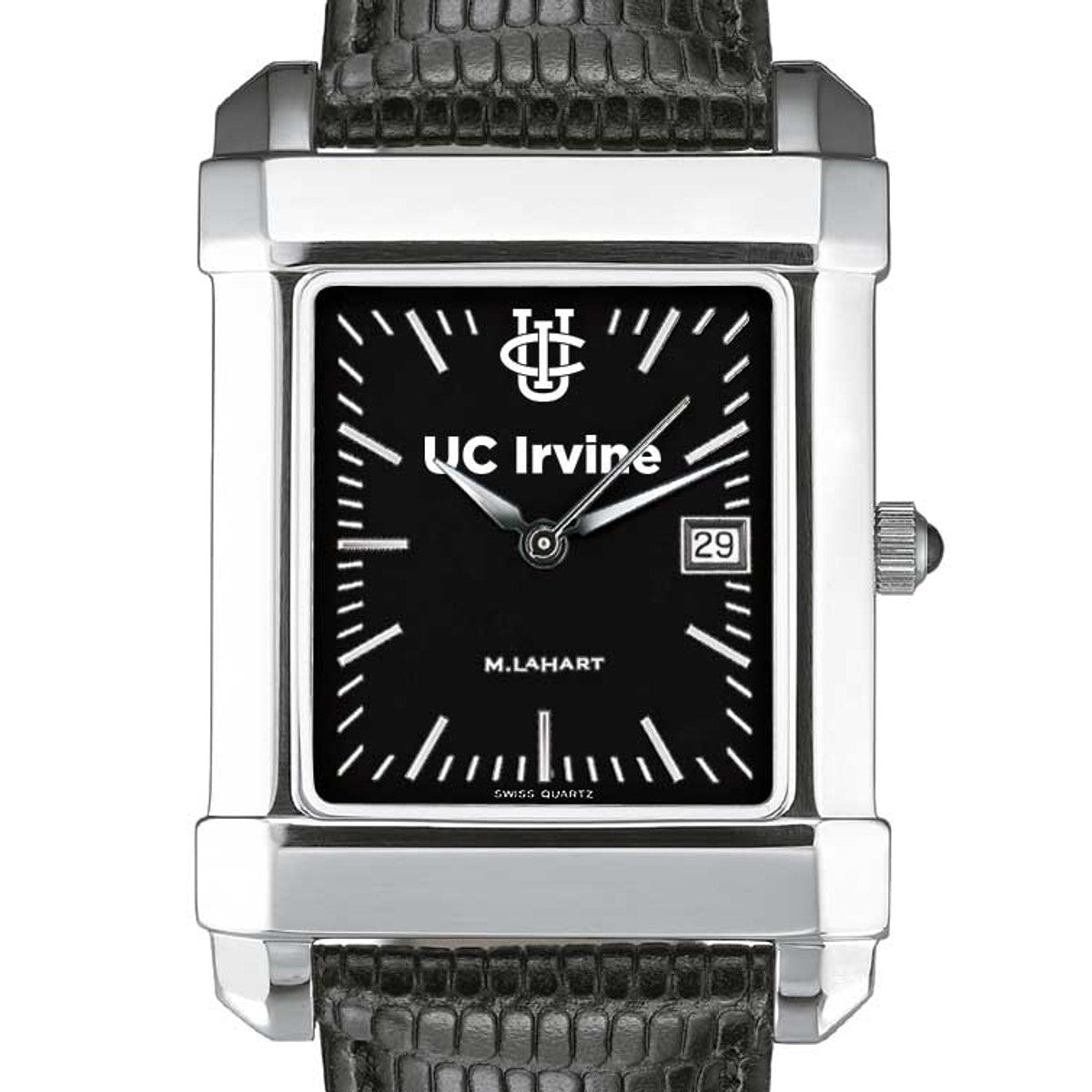 University of California, Irvine men's steel watch featuring the Irvine logo on black dial.