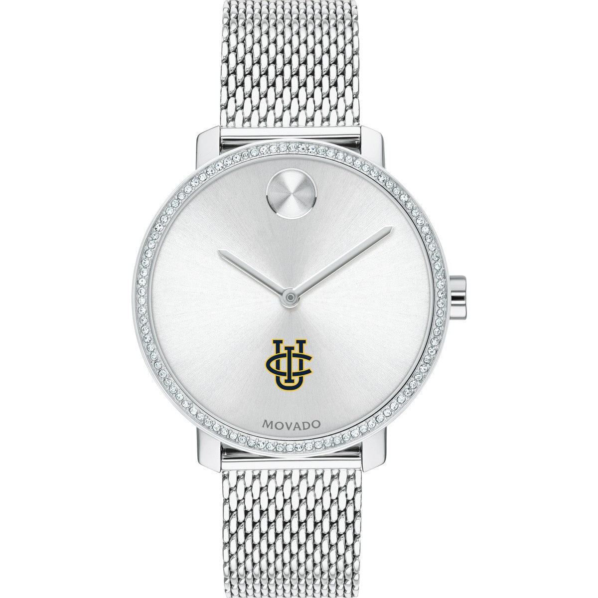 University of California, Irvine Women's Movado BOLD watch features the Irvine logo in full color at 6 o'clock on silver sunray dial.
