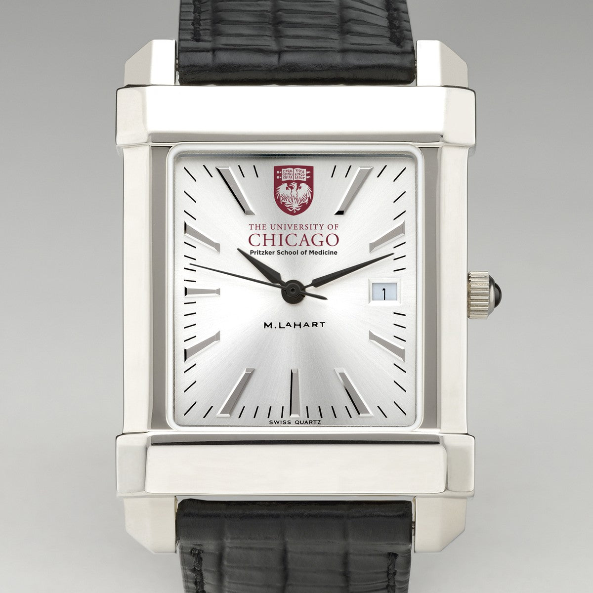 UChicago Pritzker School of Medicine men's steel watch featuring the Pritzker School of Medicine logo in full color on our sophisticated new dial with a sunray brushed metallic finish.