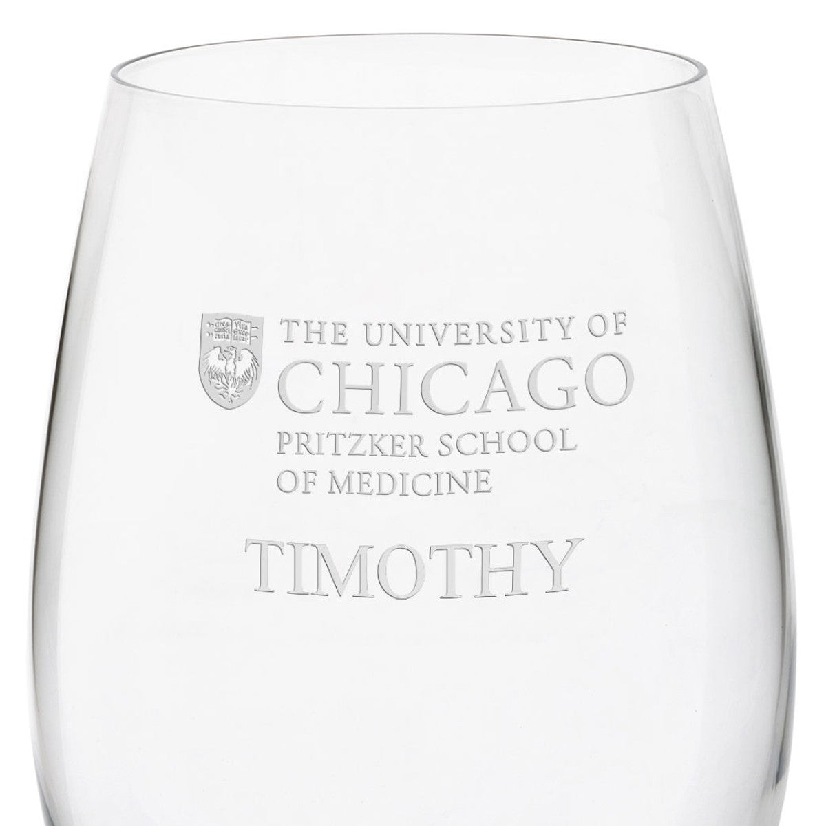 Fine UChicago Pritzker School of Medicine wine glasses are an elegant touch for your table or bar. The Pritzker School of Medicine logo is deep-etched on each glass.