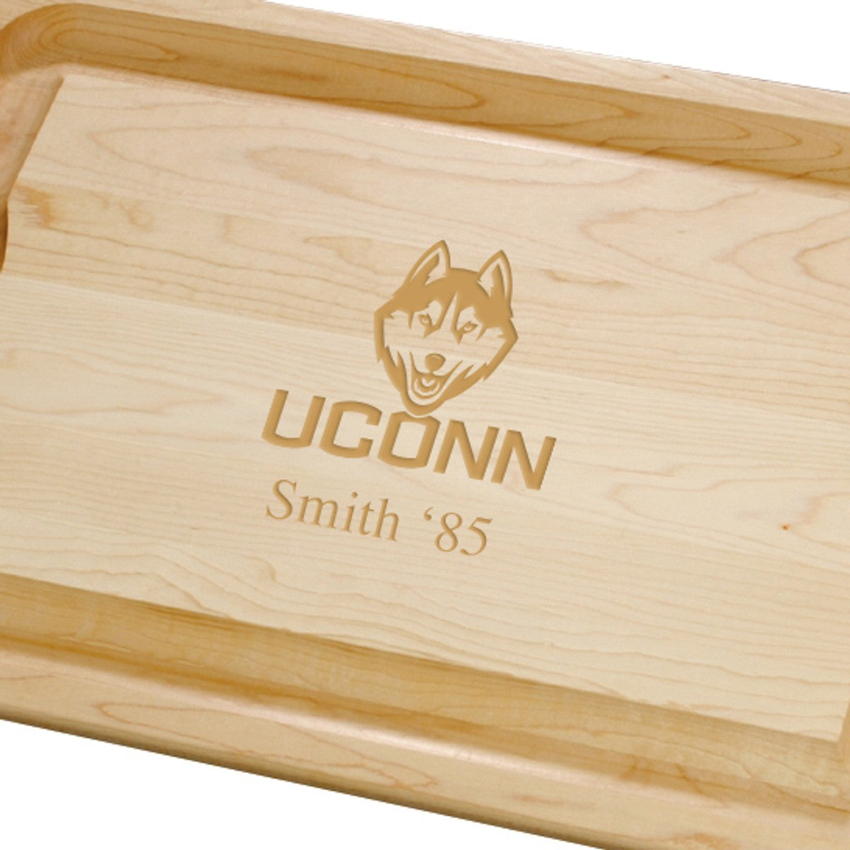 The University of Connecticut Maple Cutting Board is crafted from sturdy Maple with undercut handles and a wide groove to collect juices while you carve. Ample surface featuring the UConn Logo is suitable for both cutting and serving.