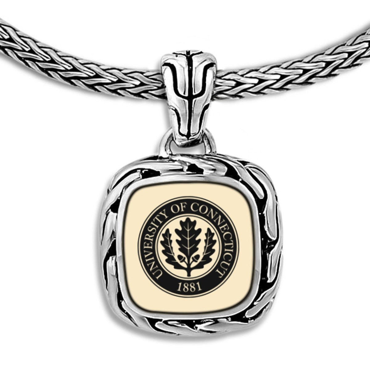 The sterling charm features an 18-karat gold center, intricately engraved with the UConn Logo. The bracelet is handwoven from beautiful sterling silver strands, giving each piece authentic contours, movement and feel – and quintessential John Hardy style.