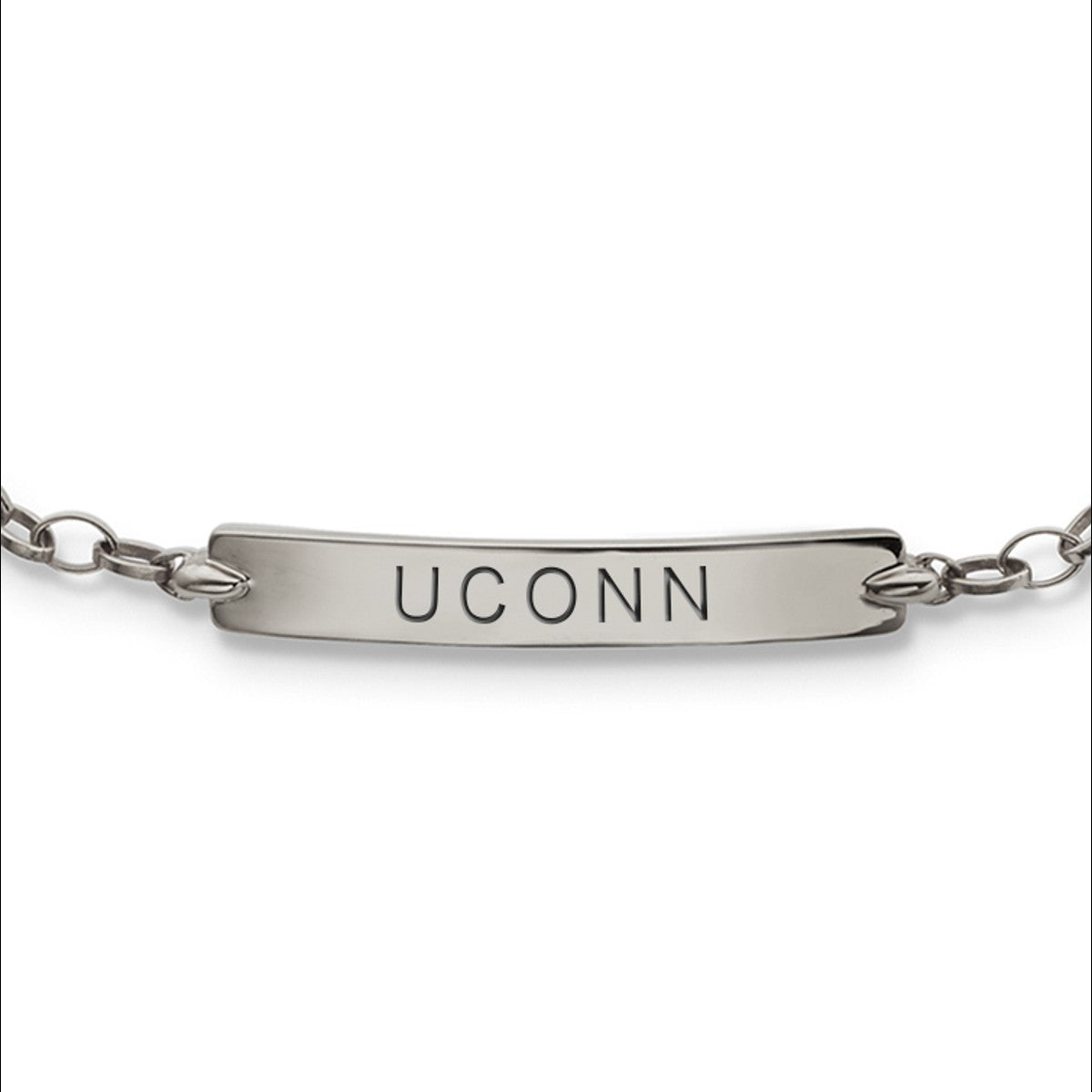 A feminine, delicate bracelet in sterling silver as appropriate for evening wear as day. "UCONN" engraved on slim banner accentuates the elegance.
