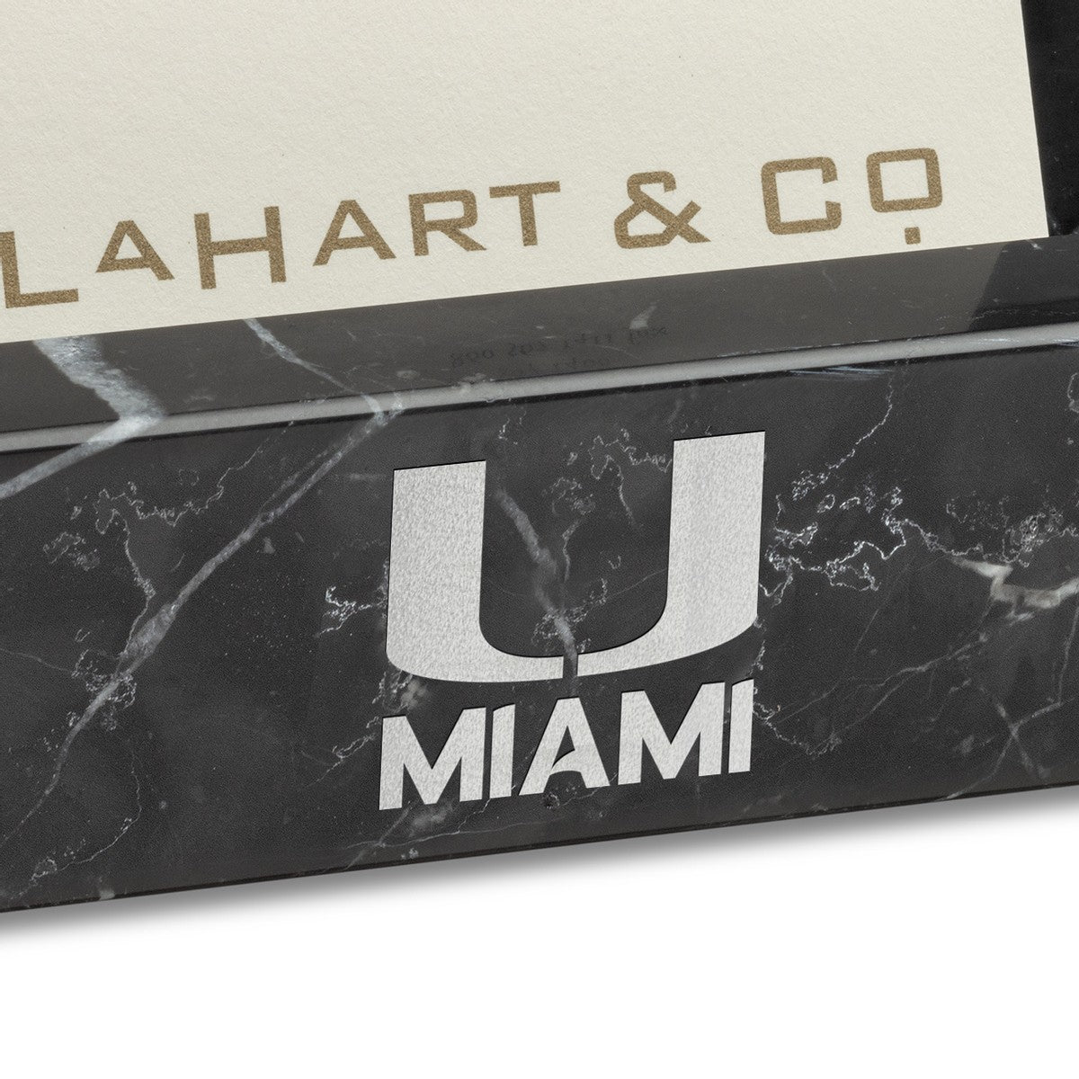 Perfect for new grads and seasoned professionals, the officially licensed University of Miami marble cardholder is an essential for the desk of Miami fans. The Miami Logo is elegantly featured on the front of this substantial, solid marble card holder and accommodates all standard size business cards.