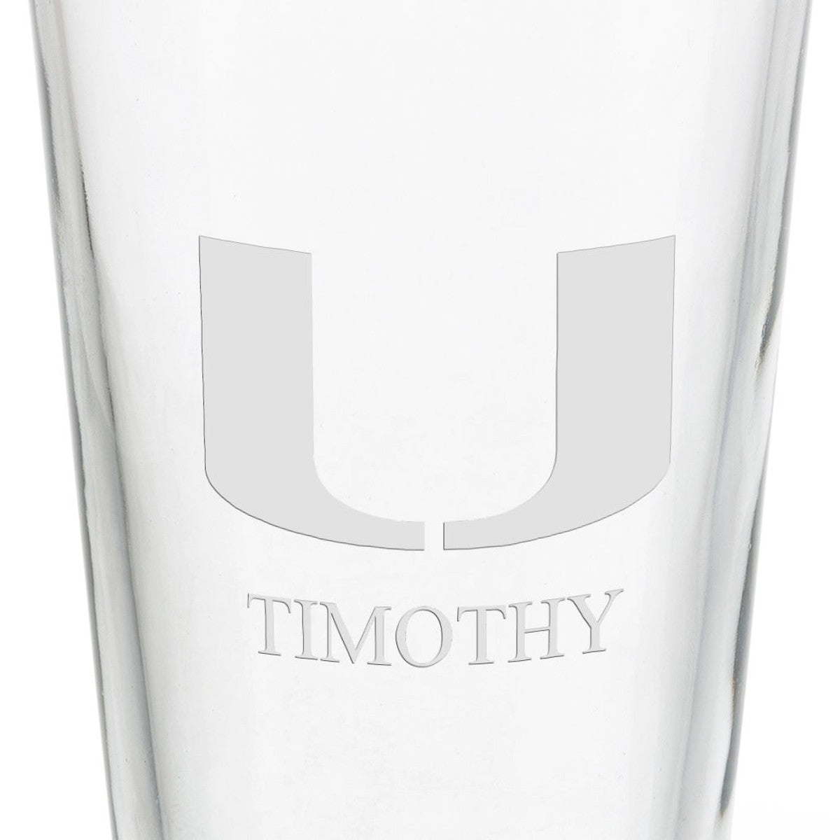 Each Miami 16 oz pint glass is deep-etched with the University of Miami logo. Its simple styling and crystal-clear clarity make this glass perfect for any drink. Your name can be added under the logo for free.