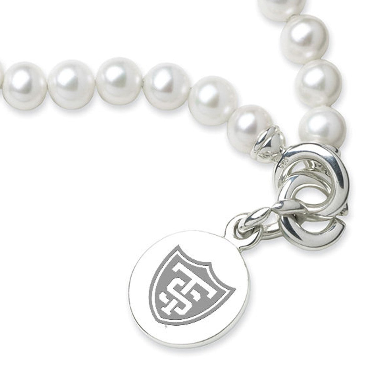 University of St. Thomas pearl bracelet and sterling silver St. Thomas charm features the St. Thomas Logo delicately engraved on front and interlocking "C" clasp.