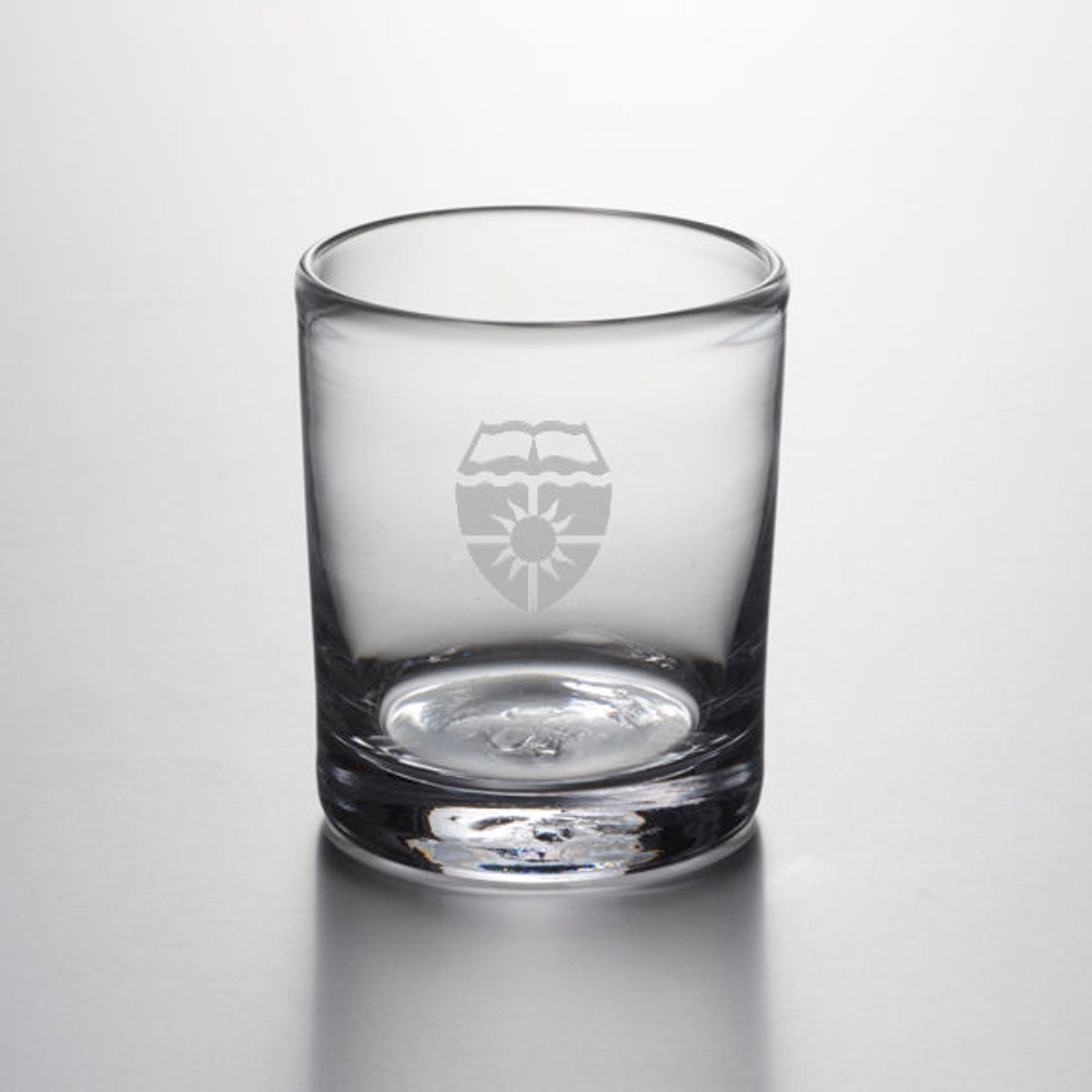 The St. Thomas Double Old Fashioned Glass features the St. Thomas Logo etched on the hand-blown glass. From its narrowly flared lip to its sleek, cylindrical body and sturdy, solid base, this glass epitomizes sophistication.