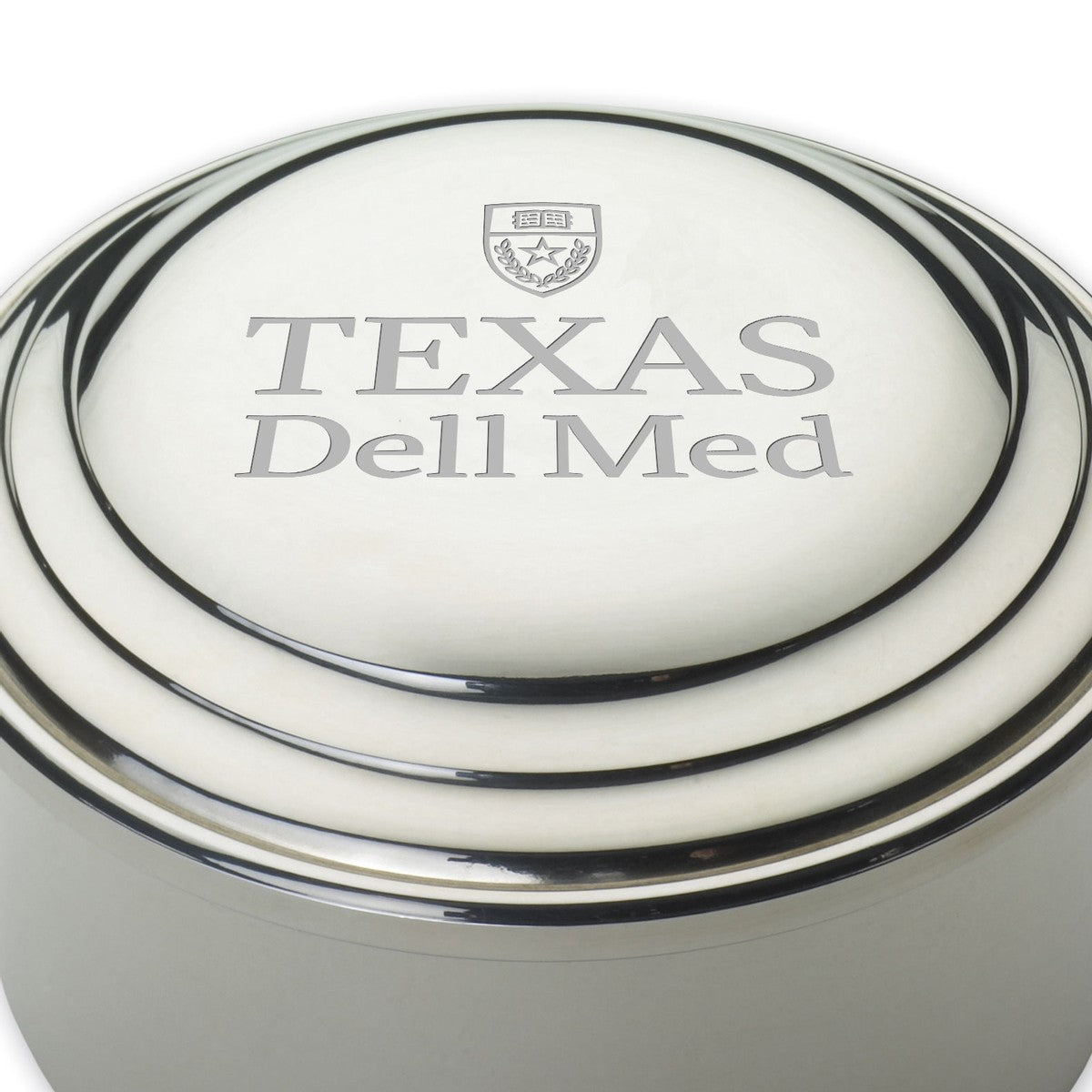 The University of Texas at Austin Dell Medical School pewter keepsake box is a beautiful space to store your treasures and features the Texas Dell Med logo on its lid.