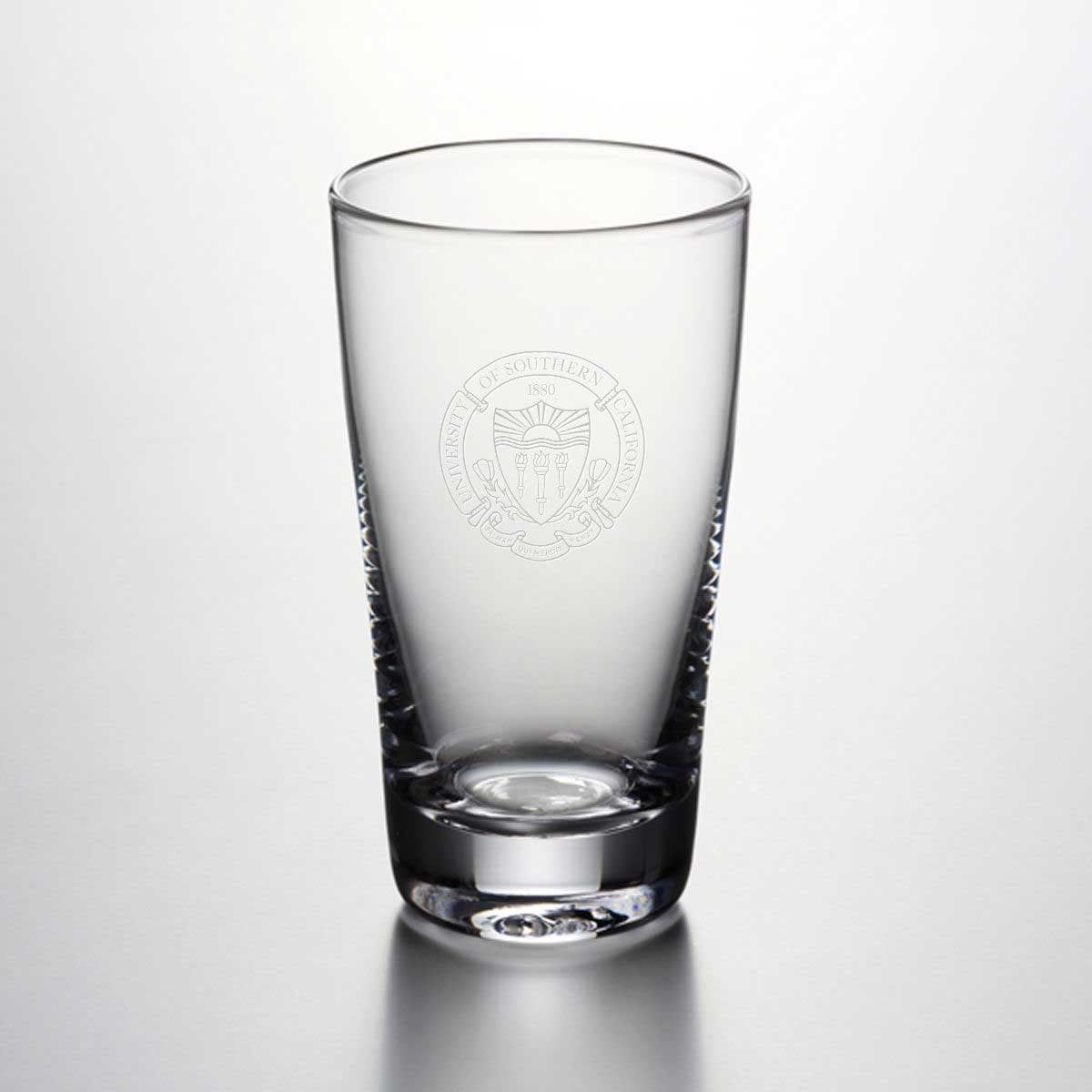 USC Pint Glass features the USC logo handsomely engraved on the hand-blown glass. From its narrowly flared lip to its sleek, cylindrical body and sturdy, solid base, this pint glass is a classic.