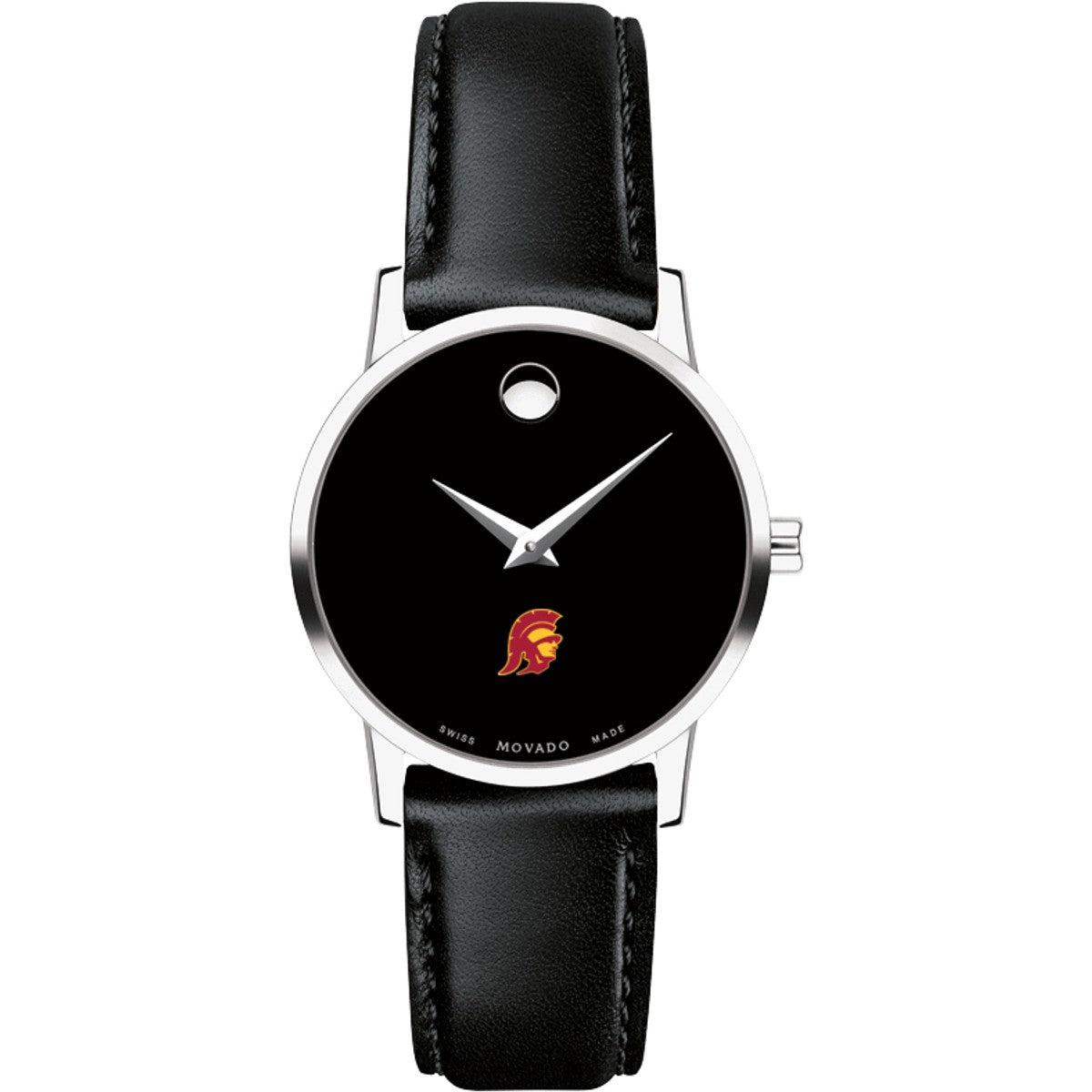 University of Southern California Women's Movado Museum watch features the USC logo in full color at 6 o'clock on black dial. Created in 1947, the iconic concave dot symbolizes the sun at high-noon. Complimentary personal engraving.