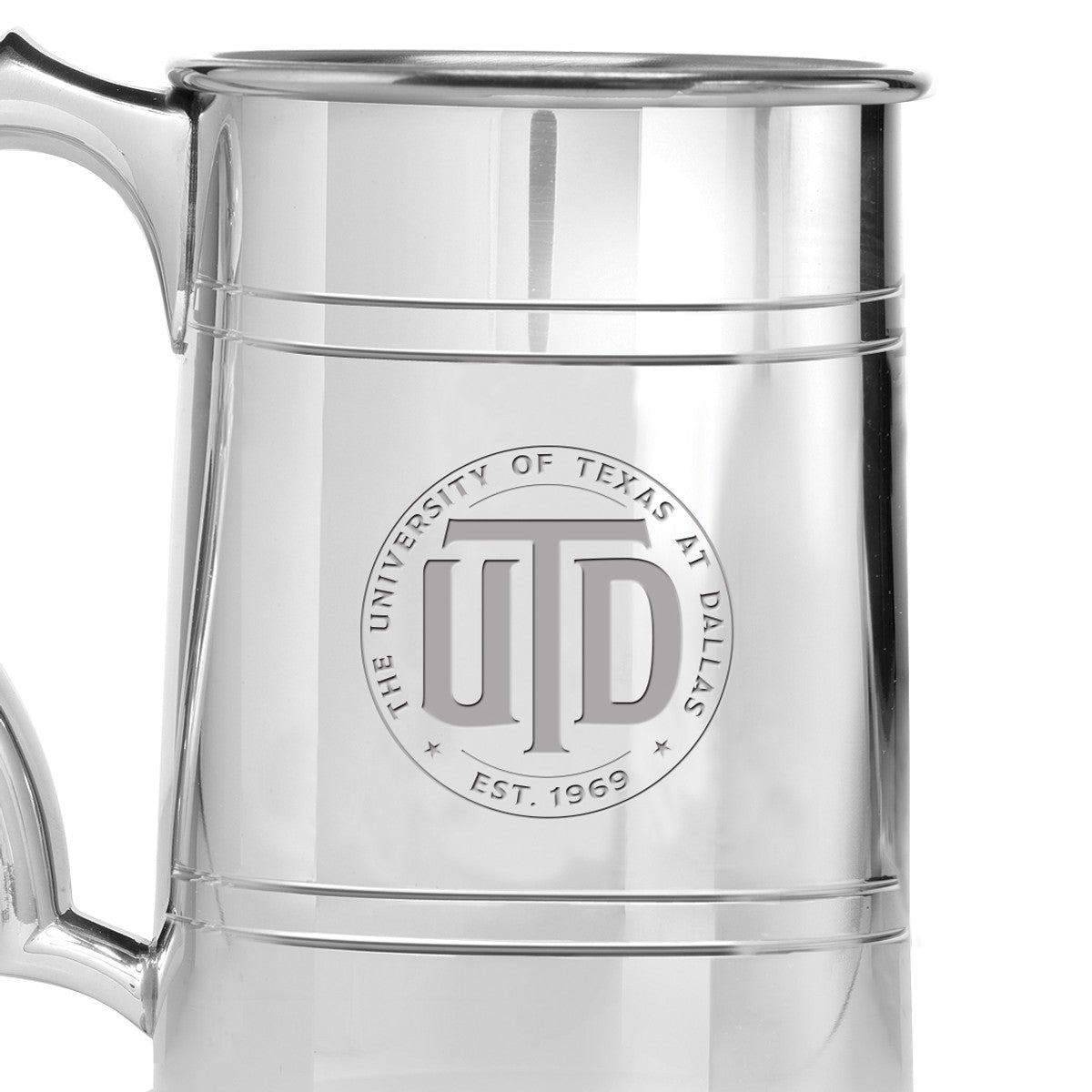 Handsomely engraved University of Texas at Dallas pewter stein, generously accommodates your custom-engraved personal message.
