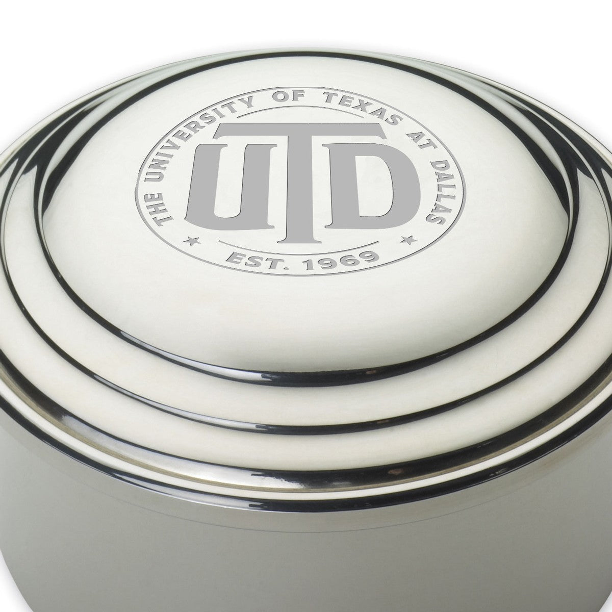 University of Texas at Dallas pewter keepsake box is a beautiful space to store your treasures and features the UT Dallas Logo on its lid.
