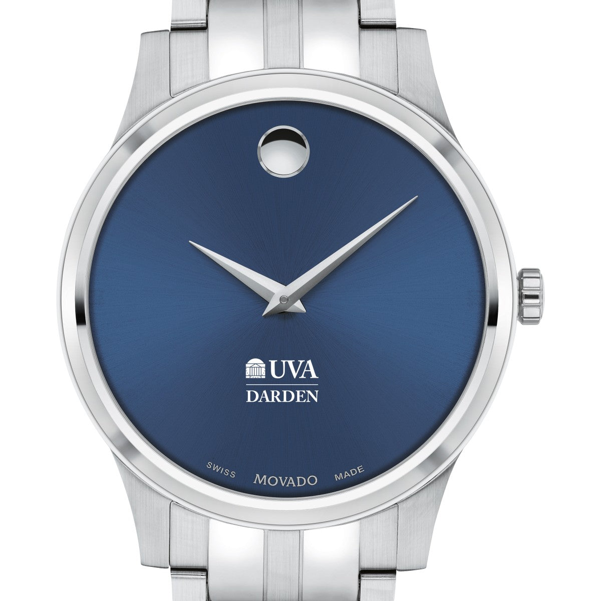 The Darden School of Business Men's Movado Collection watch boasts a striking blue dial featuring the iconic UVA Darden Logo in full color. This timeless timepiece, renowned for its concave dot representing the sun at high noon, has been a symbol of elegance since its inception in 1947. Make it uniquely yours with free engraving without affecting order processing time.