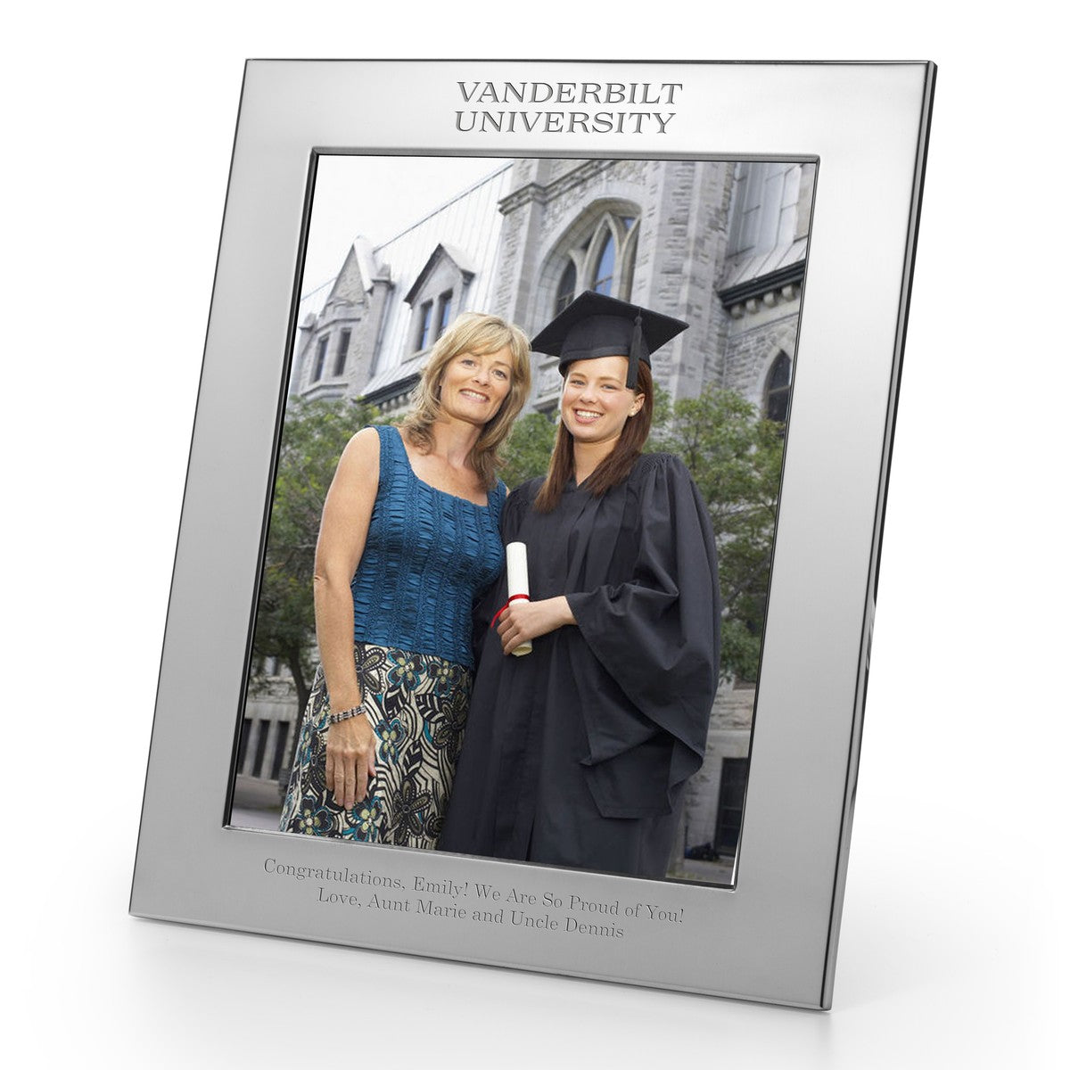 Handsomely engraved Vanderbilt University pewter frame, generously accommodates your custom-engraved personal message.