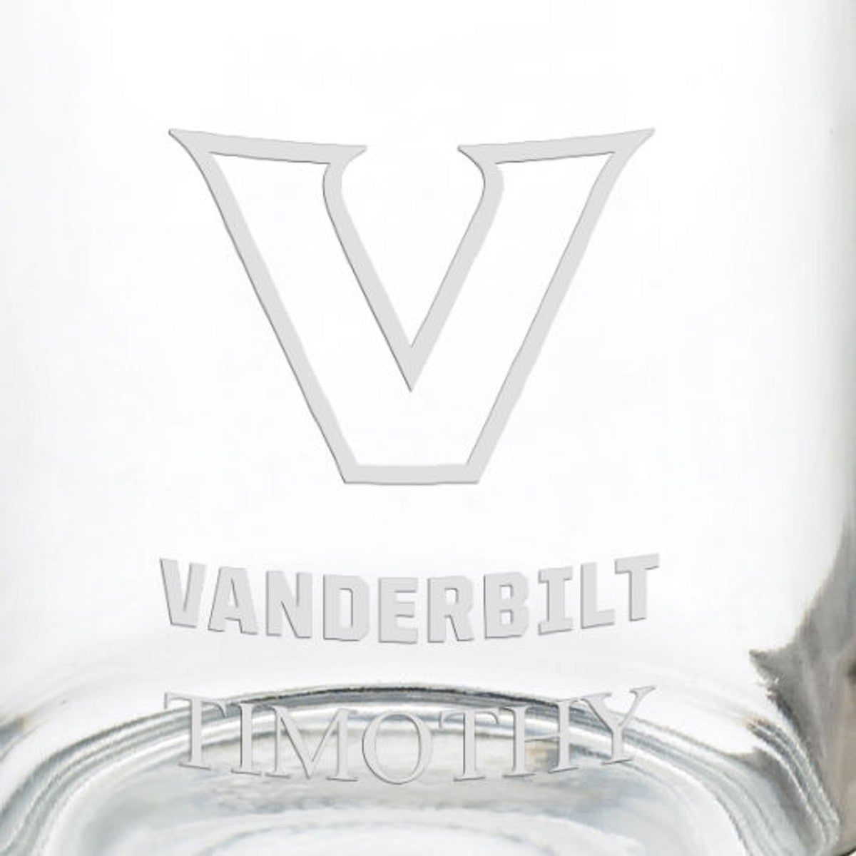 The Vanderbilt glass coffee mug is deep-etched with the Vanderbilt University logo. Generously proportioned 13 oz glasses are a pleasure to hold. Your name can be added under the logo for free.
