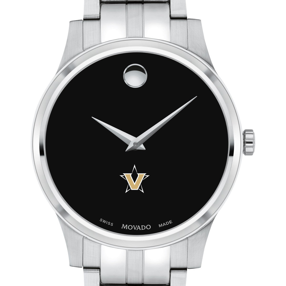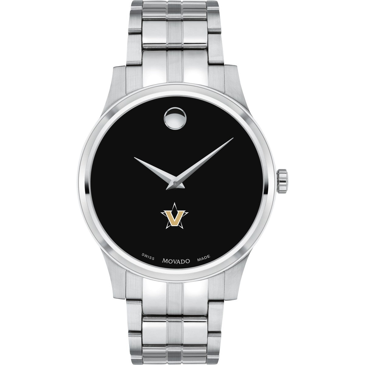 The Vanderbilt University Men's Movado Collection watch showcases the iconic Vanderbilt Logo in full color on a sophisticated black dial. This classic timepiece, featuring the renowned concave dot symbolizing the sun at high noon, has been a design masterpiece since its creation in 1947. Personalize your watch with free engraving without any delay to your order.