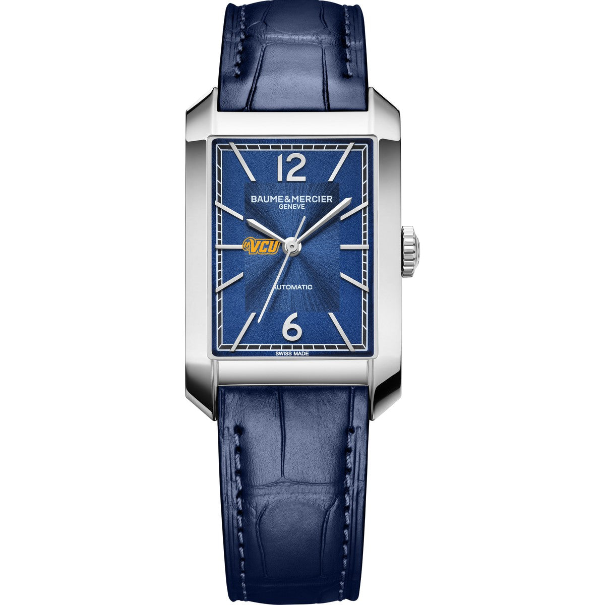 Inspired by Art Deco elegance, the VCU Men's Baume et Mercier Hampton Automatic Watch features a deep blue sun-satin dial, the VCU logo, and a matching blue leather strap. This premium Swiss automatic watch is a true showstopper for watch enthusiasts. Complimentary personal engraving.