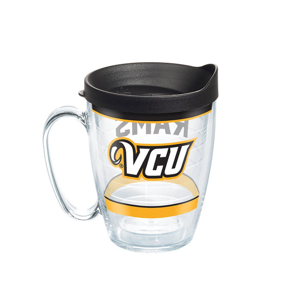 Show your VCU pride with our Tervis travel mug! Perfect for on-the-go with easy-to-grip handle and free lid. The spirited design is sealed between the tumbler walls. Double-walled construction keeps your hot drinks hot, and cold drinks cold longer.