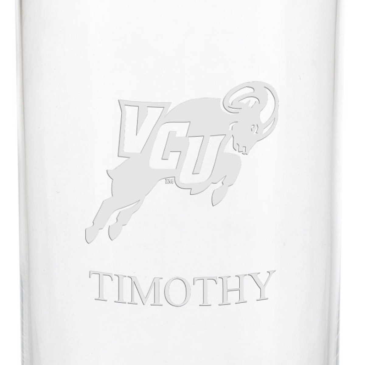 Virginia Commonwealth University iced beverage glasses have the VCU Logo deep-etched on each glass. Generously proportioned 16-ounce glasses are a pleasure to hold.