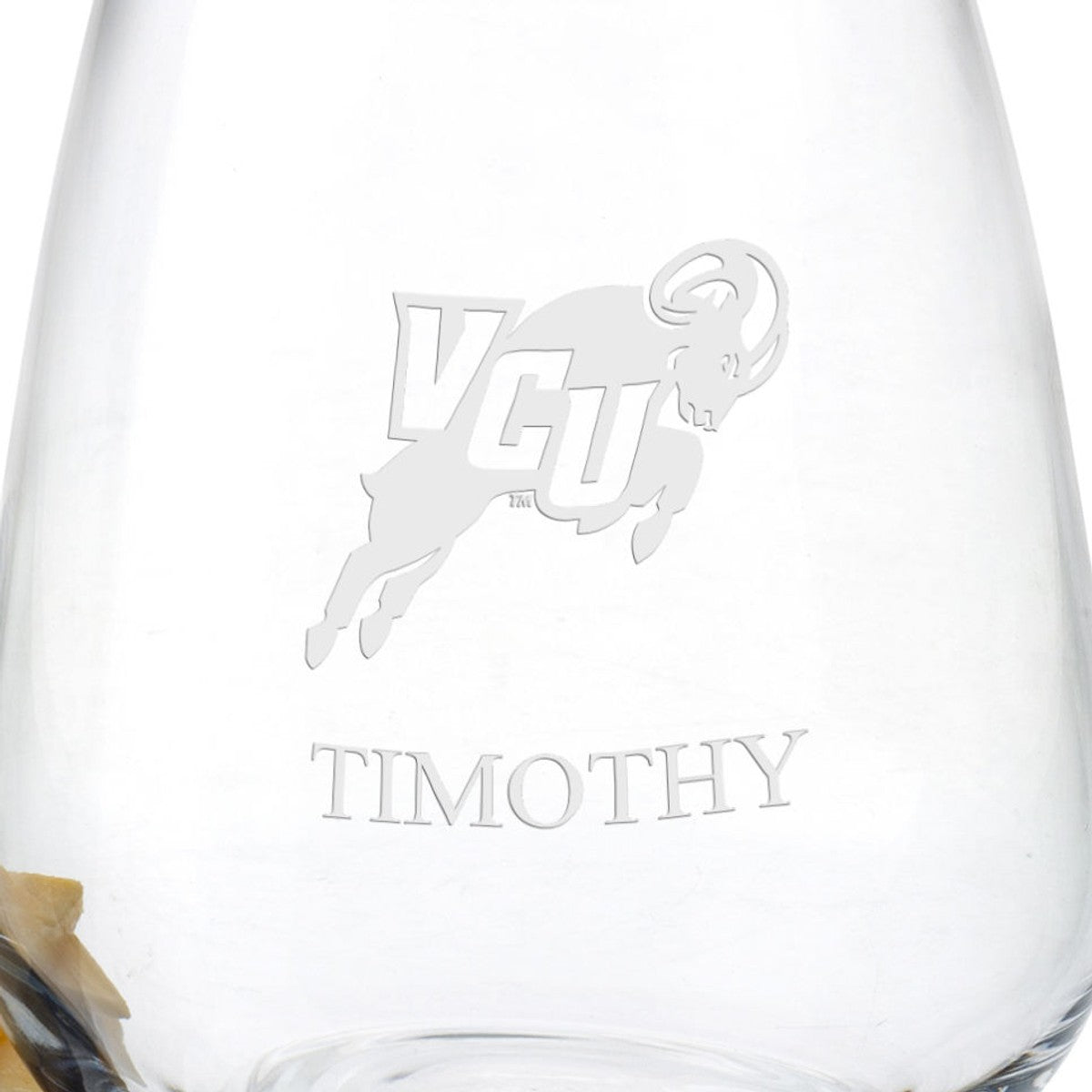 Contemporary Virginia Commonwealth University stemless wine glasses bring an elegant touch to your table or bar. The VCU Logo is deep-etched on each glass.