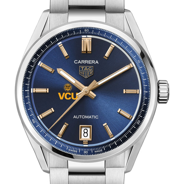 Discover the VCU Women's TAG Heuer Steel Carrera watch, showcasing the VCU Logo on a deep-blue sunray brushed dial with 18K 5N rose gold-plated hands and indexes. Powered by the Calibre 7 movement, this timepiece is designed for precision and excellence. Complimentary personal engraving.