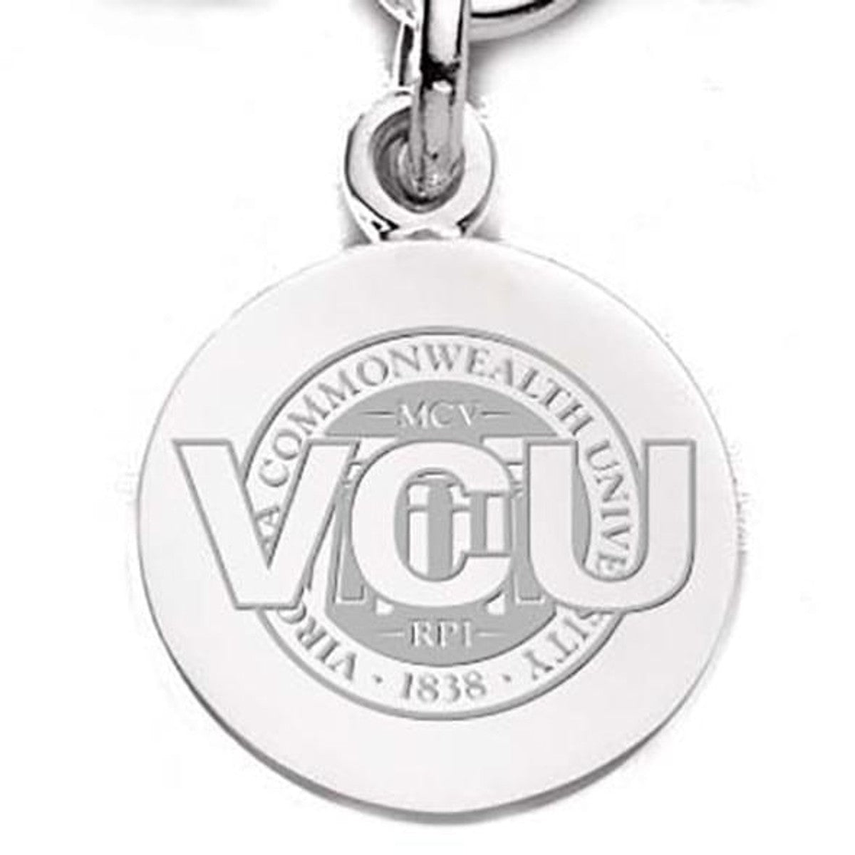 Virginia Commonwealth University sterling silver, finely detailed charm features VCU shield on front.