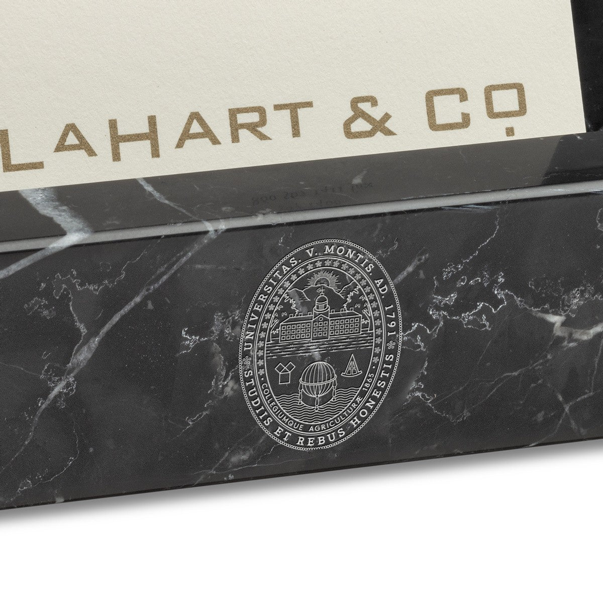 Perfect for new grads and seasoned professionals, the officially licensed University of Vermont marble cardholder is an essential for the desk of Vermont fans. The Vermont Logo is elegantly featured on the front of this substantial, solid marble card holder and accommodates all standard size business cards.